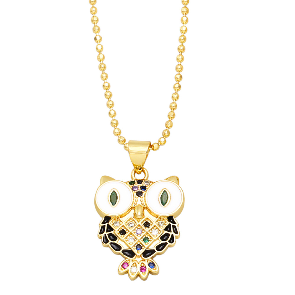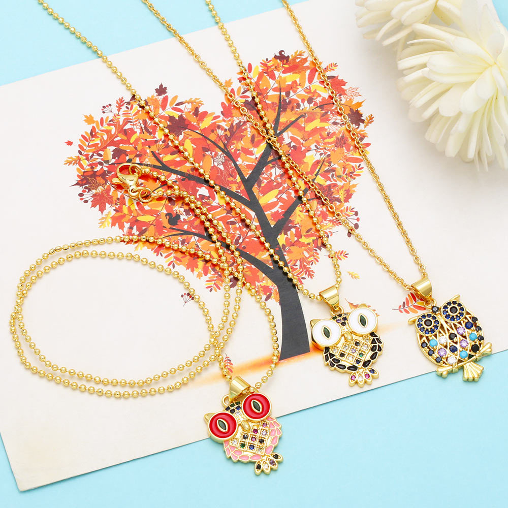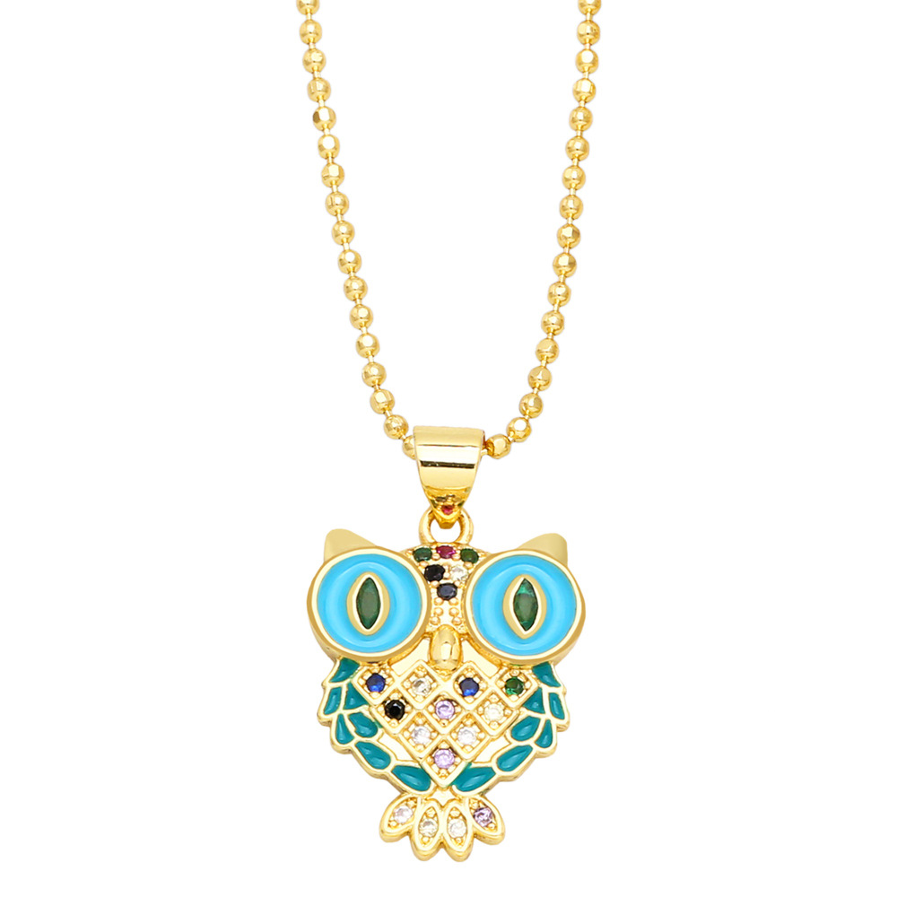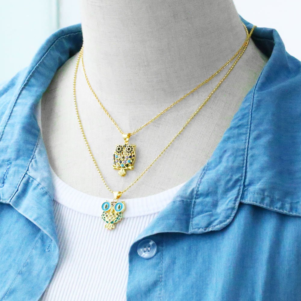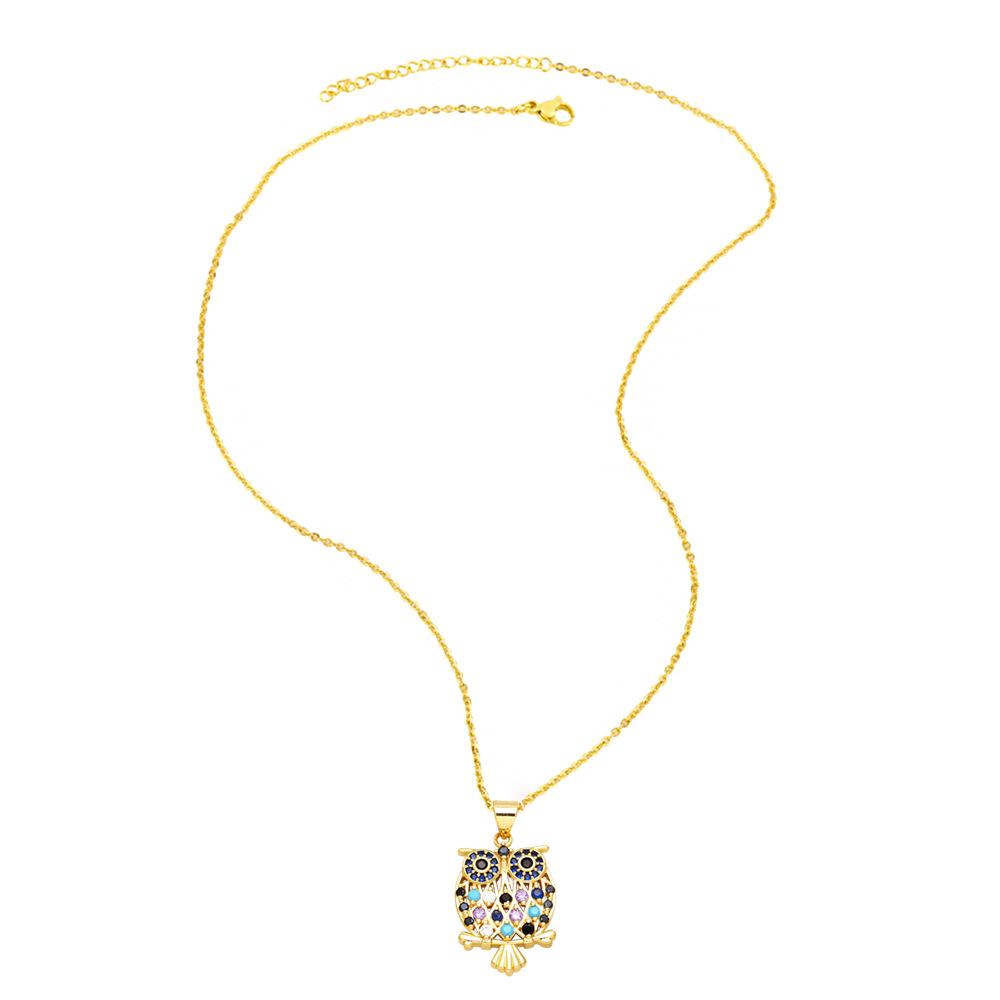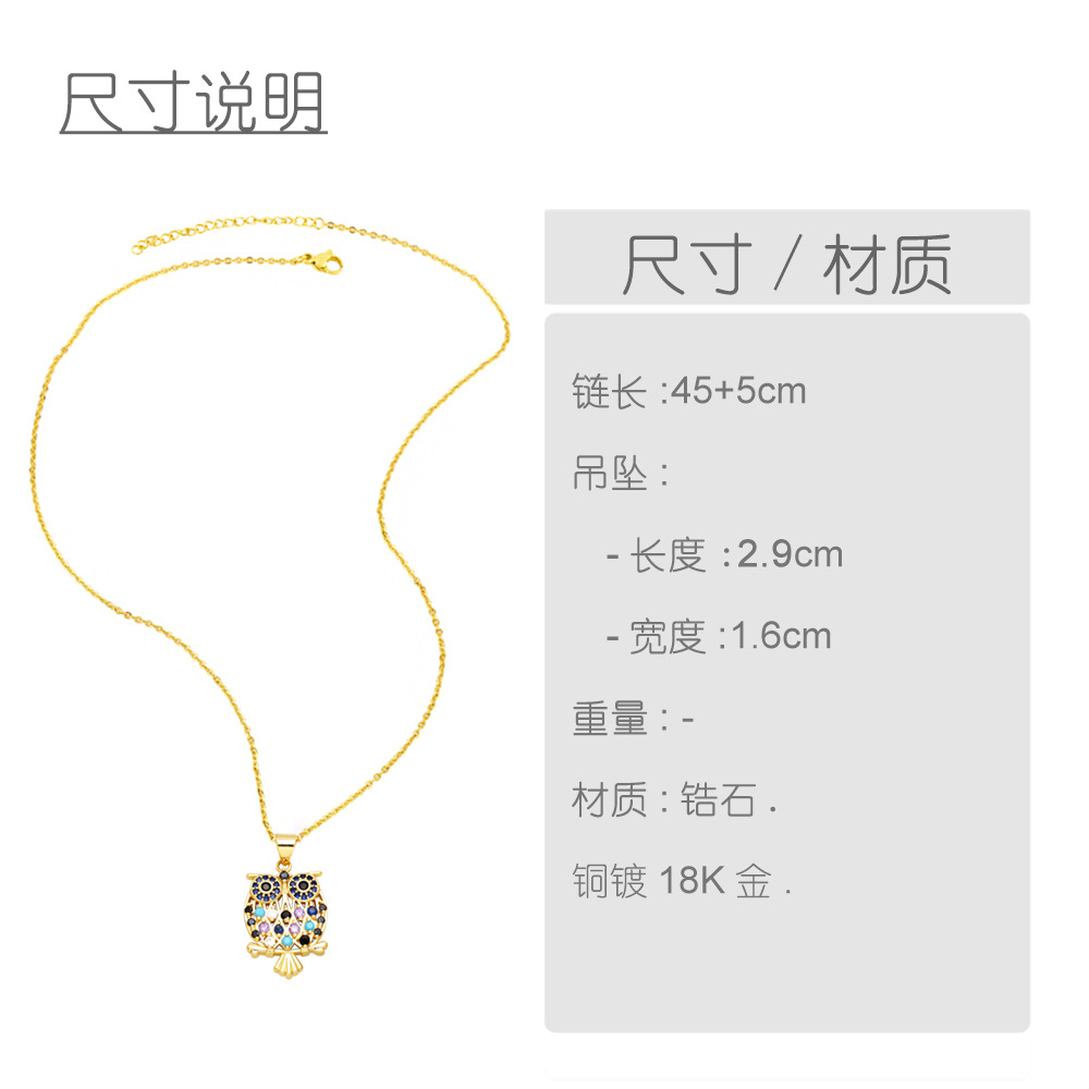 Clearance simple cute owl necklace female temperament inlaid with colorful zircon owl pendant clavicle chain nkb708