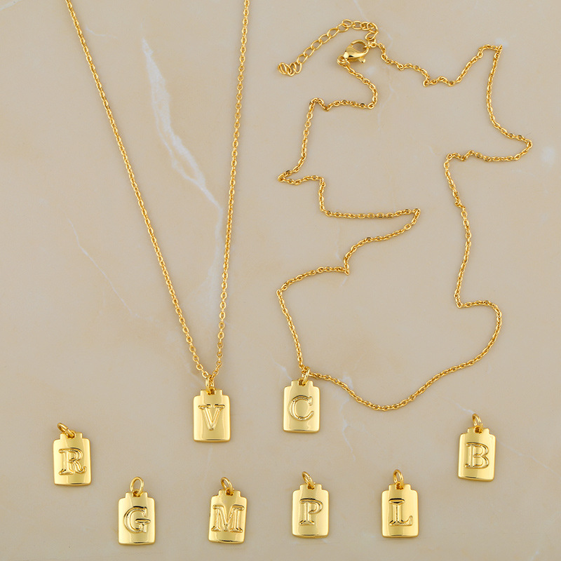 Hot sale 26 letters necklace female copper plated real gold polished letter pendant clavicle chain nkq67