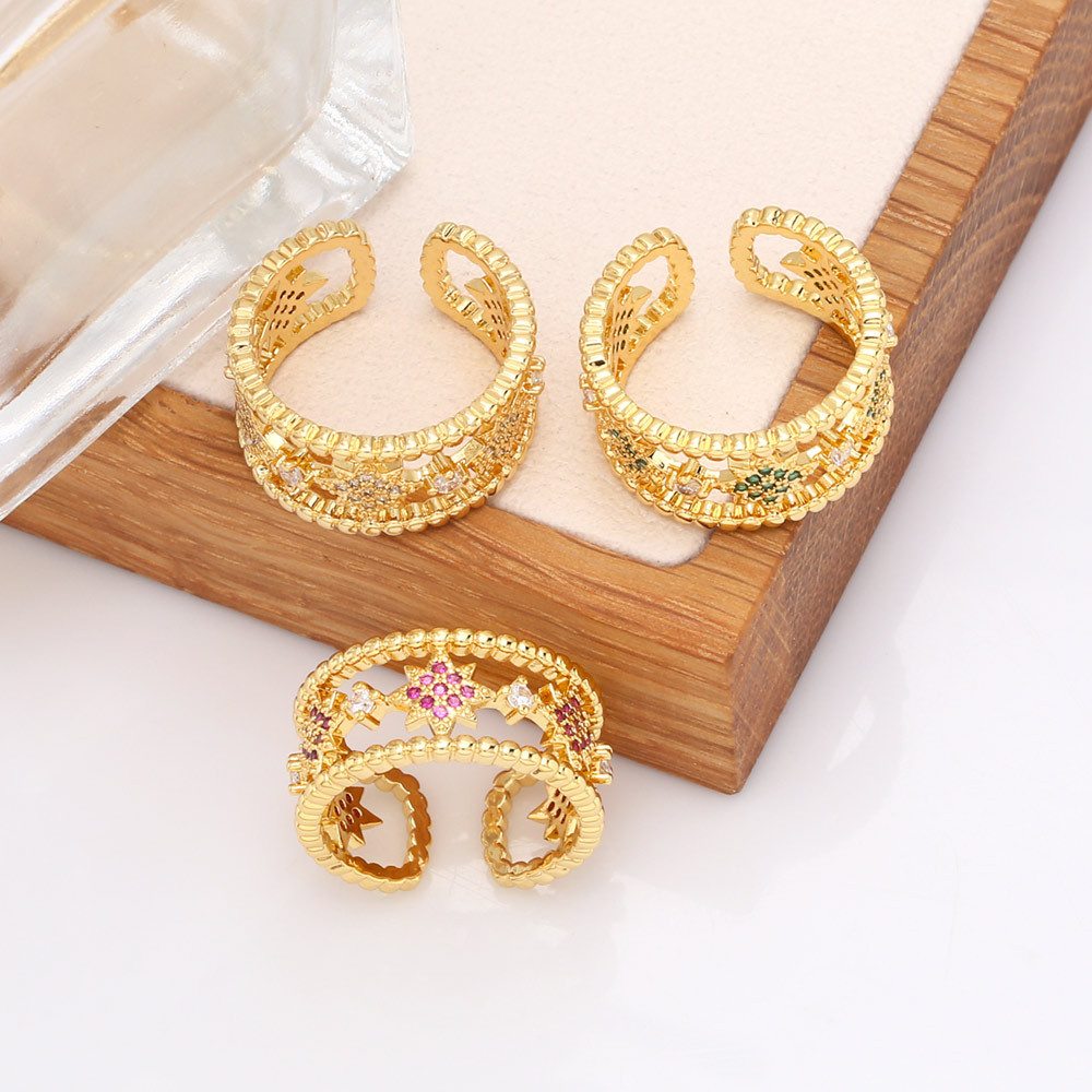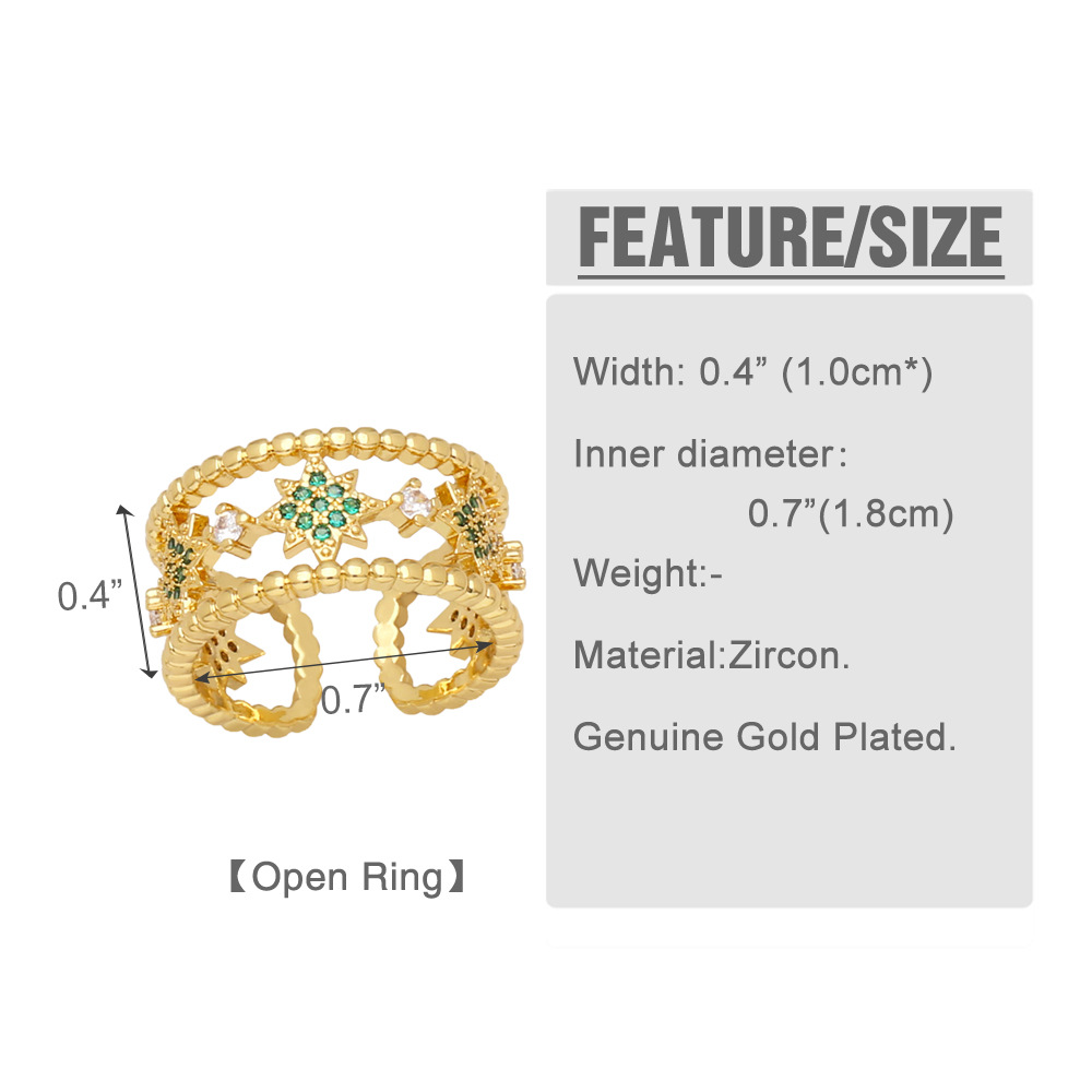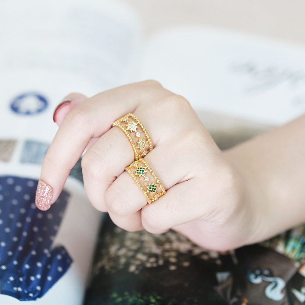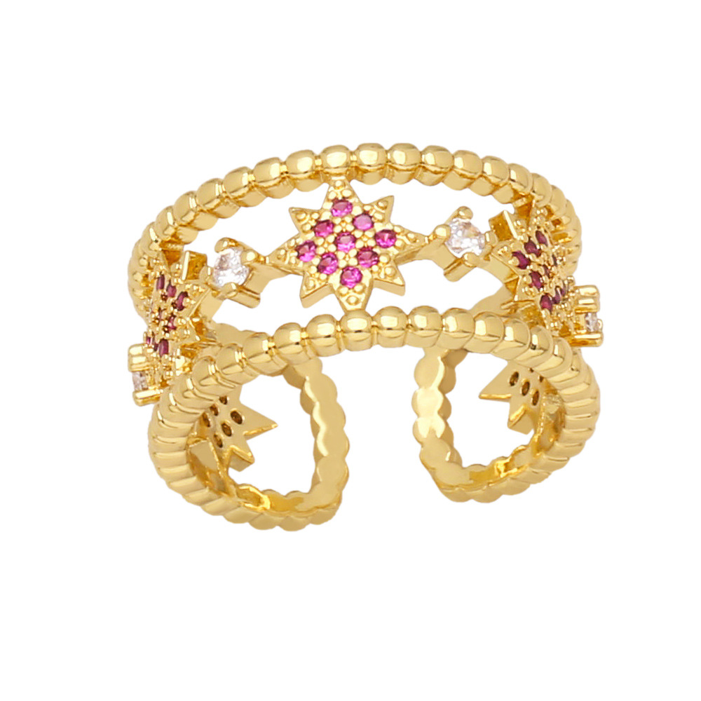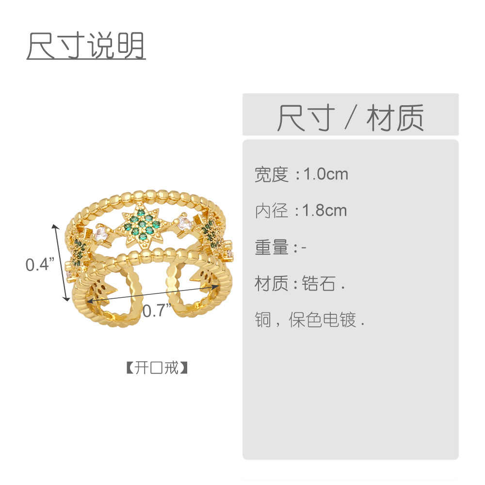 Clearance Star Five-pointed Star Ring Women's European and American Fashion Colored Zircon Open Ring Internet Celebrity Jewelry RIR13