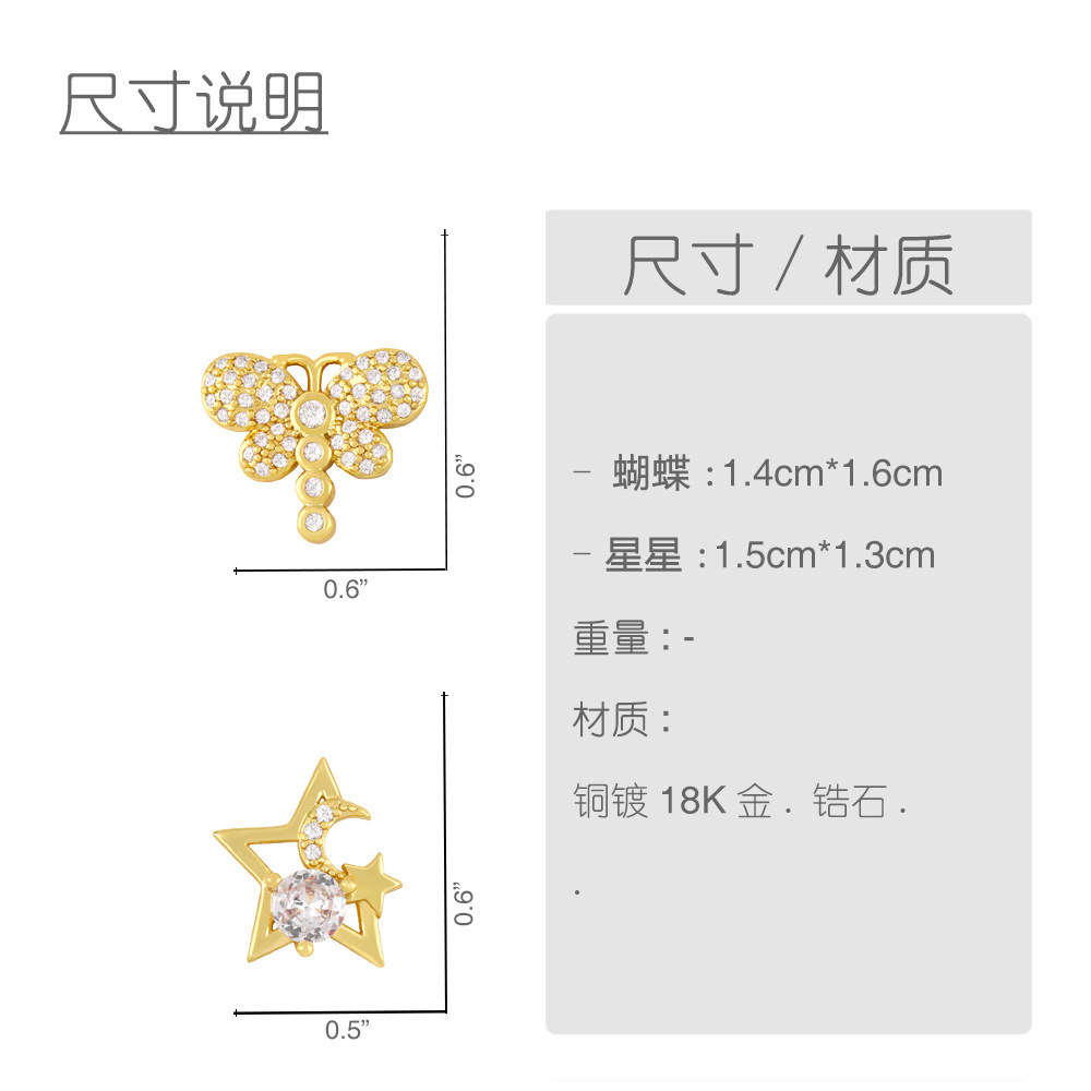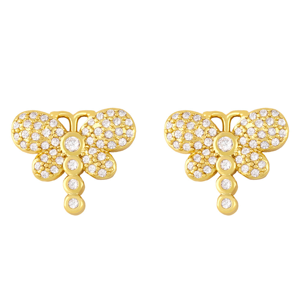 Clearance Star Moon Earrings European and American Fashion Full Diamond Zircon Dragonfly Earrings Women's Niche Design Earrings ery47