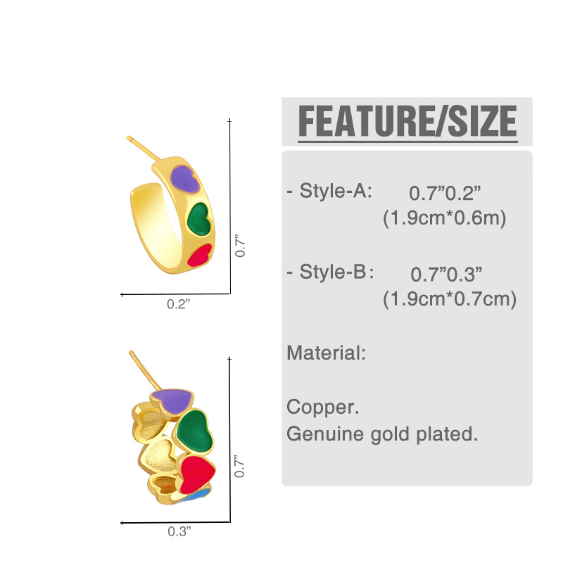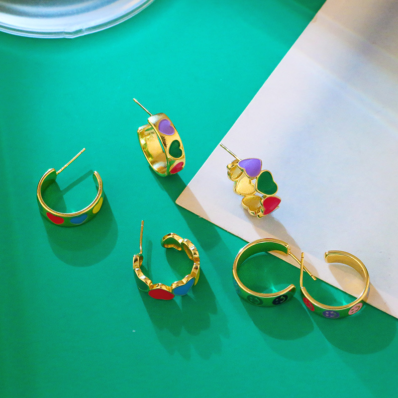 Clearance student girl style earrings Korean version INS style C-shaped color drop love earrings holiday earrings erx14