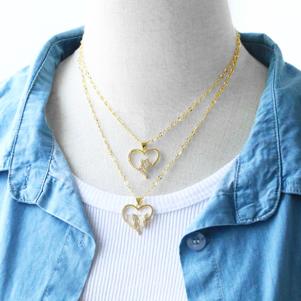 Clearance style butterfly love necklace women's simple heart-shaped pendant clavicle chain hot selling jewelry nku62