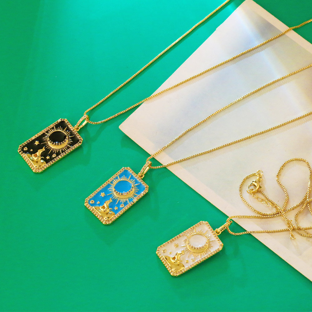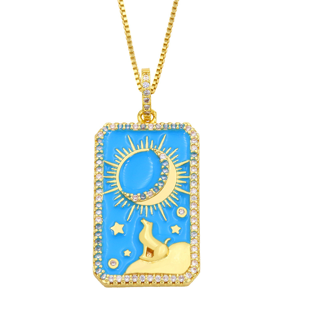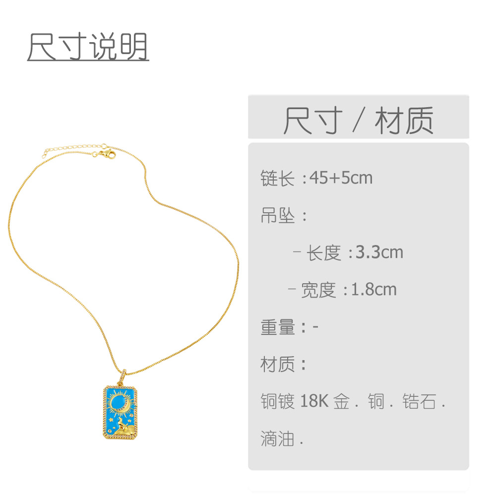 Clearance Tarot Necklace Women's Source Copper Plated 18K Gold European and American Fashion Oil Painting Pendant Necklace nkz16