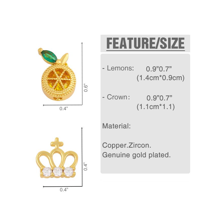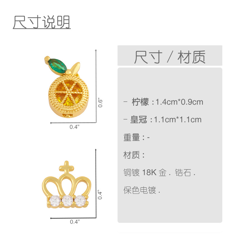 Clearance tide crown earrings niche design micro-inlaid zircon fruit earrings cute small earrings erx73