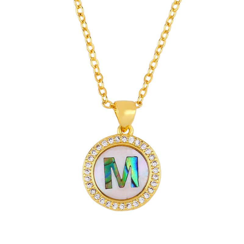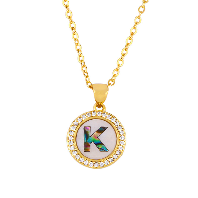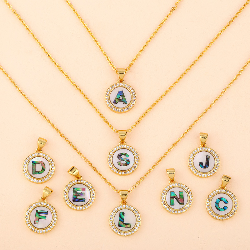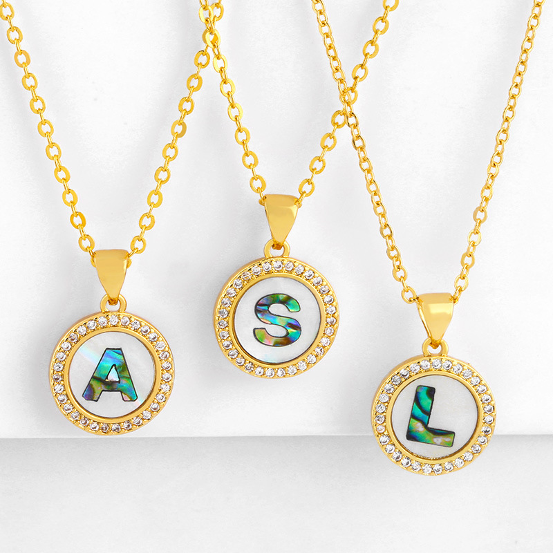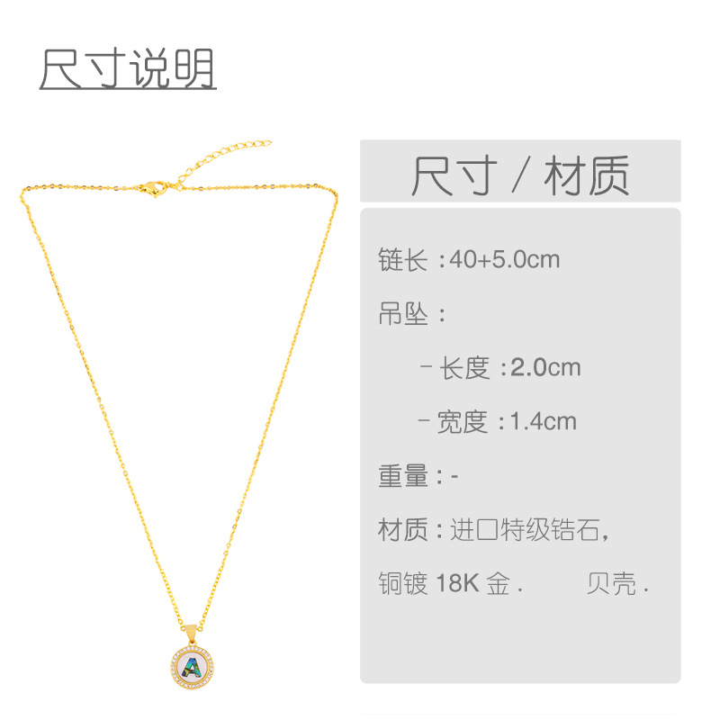 Clearance Valentine's Day letter necklace round color shell 26 letter diamond necklace nkq05