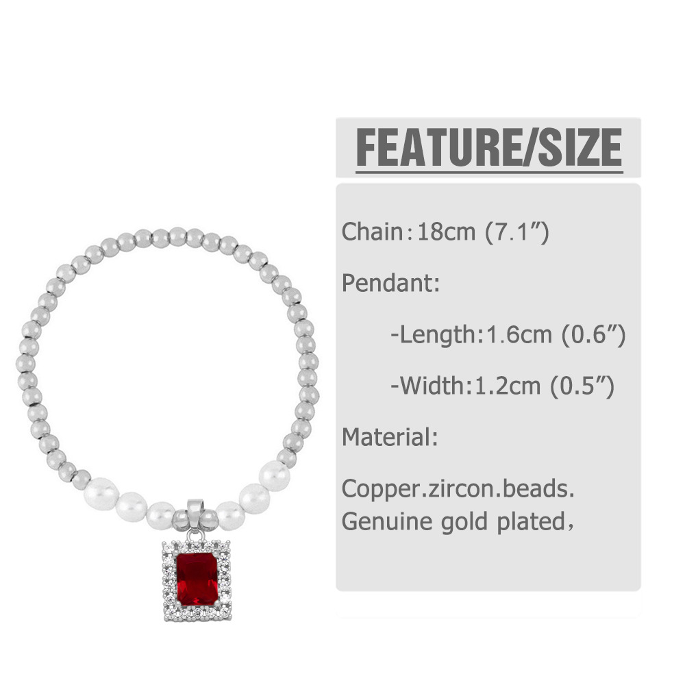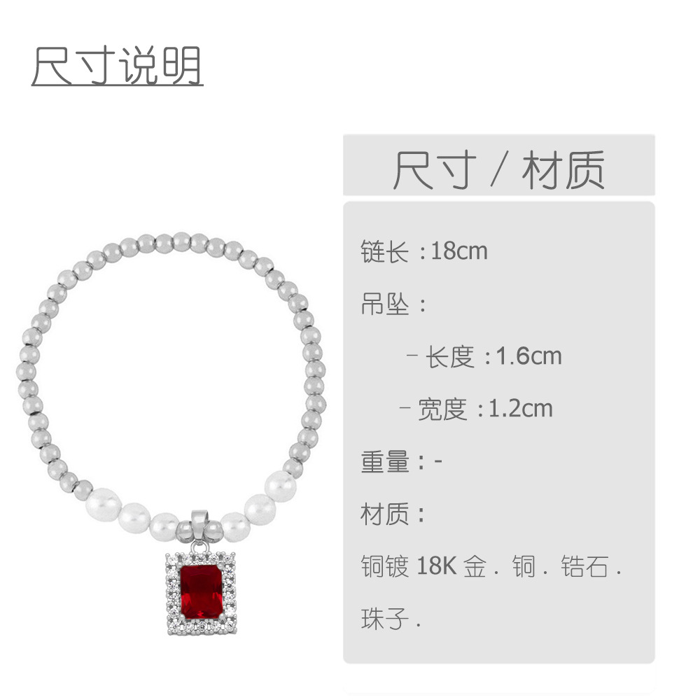 Clearance vintage silver round bead elastic bracelet bracelet European and American fashion personality square zircon pendant bracelet brk38