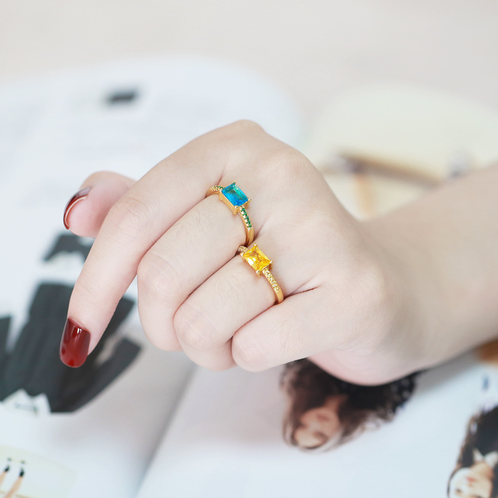 Hot selling new princess square ring European and American hot style inlaid zircon women's jewelry engagement proposal ring
