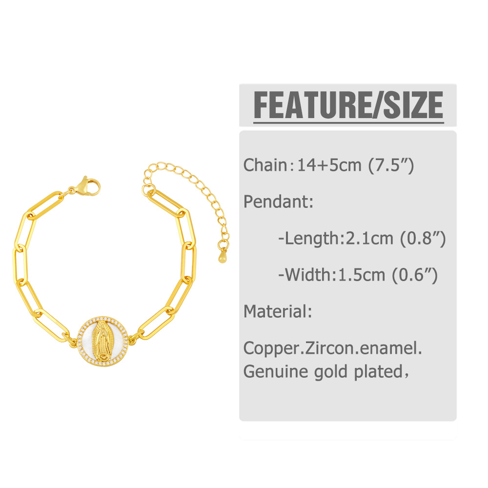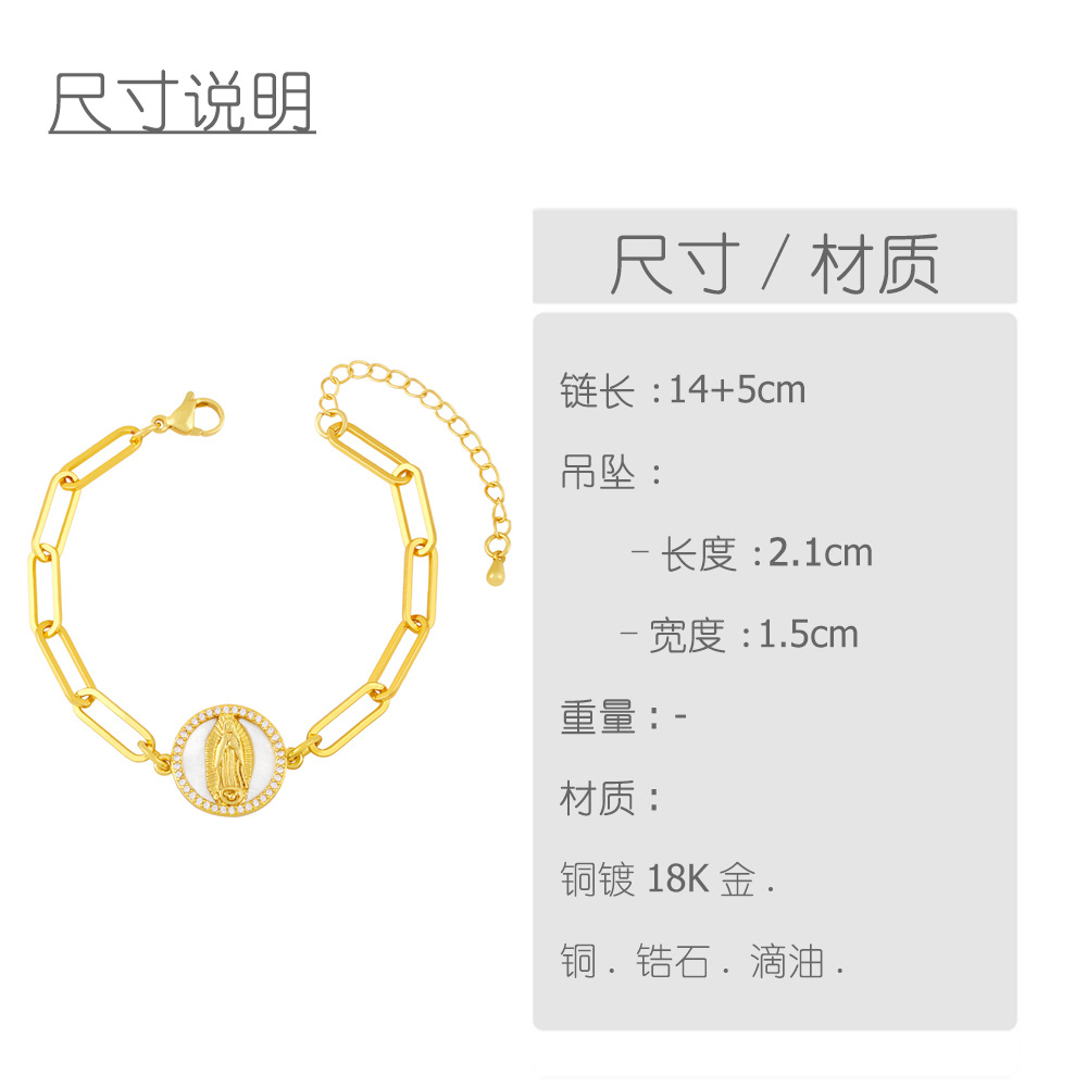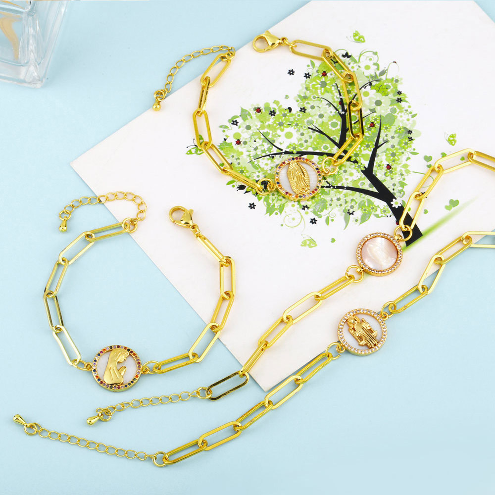 Clearance Virgin Mary bracelet mother of pearl inlaid with colored diamonds round plaque thick chain niche bracelet female bre67