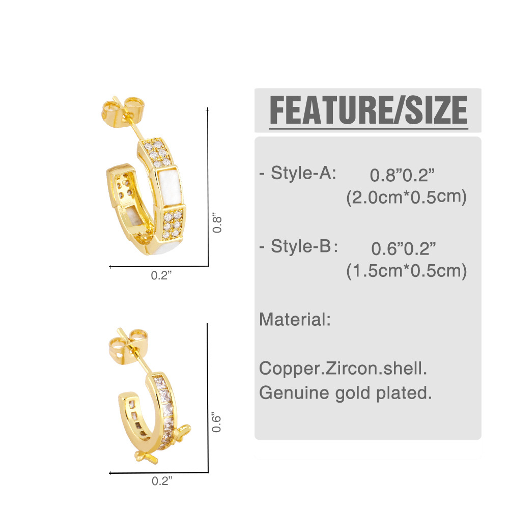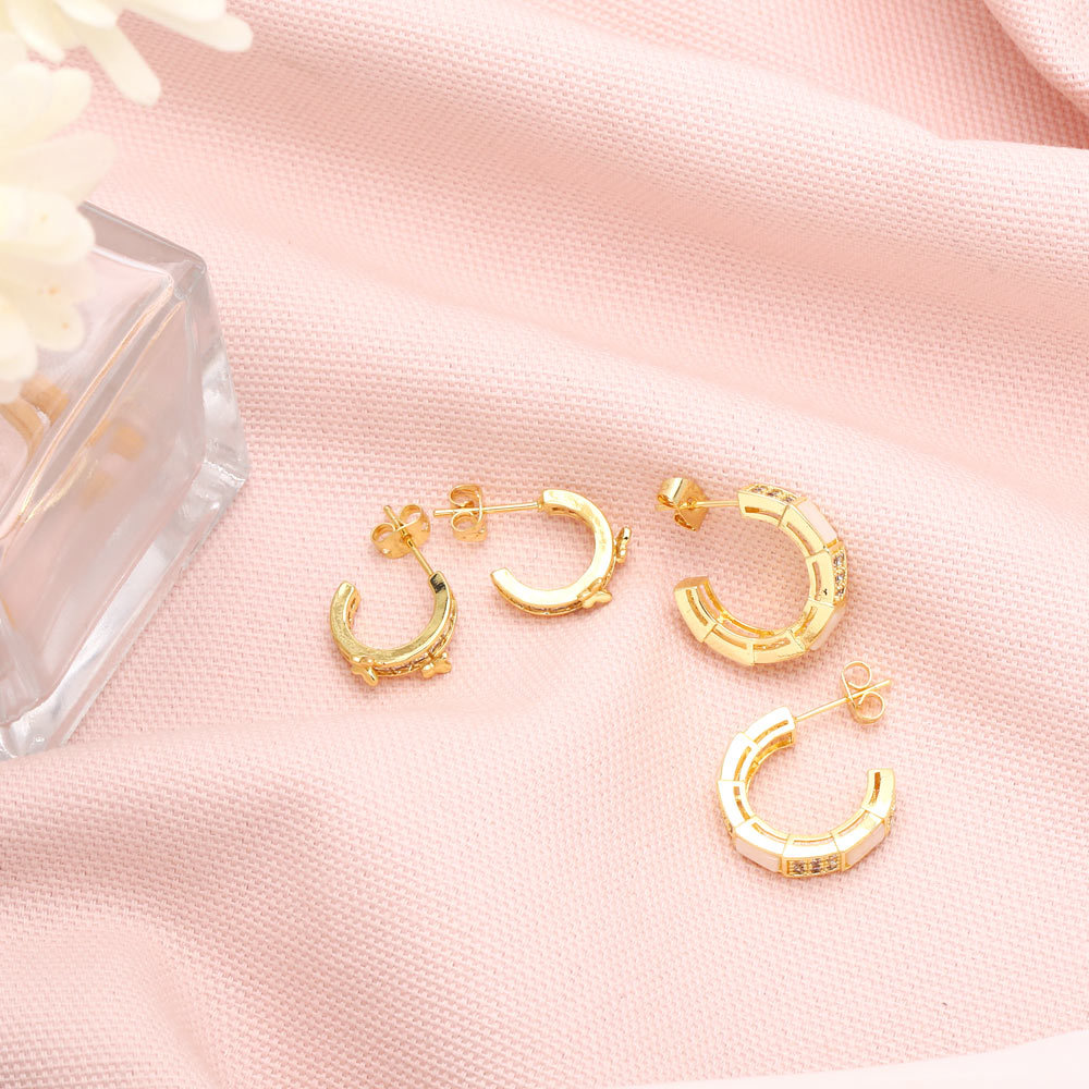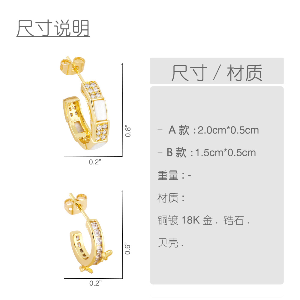 Clearance workplace style commuting versatile C-shaped earrings design sense zircon shell earrings European and American earrings wholesale erz13