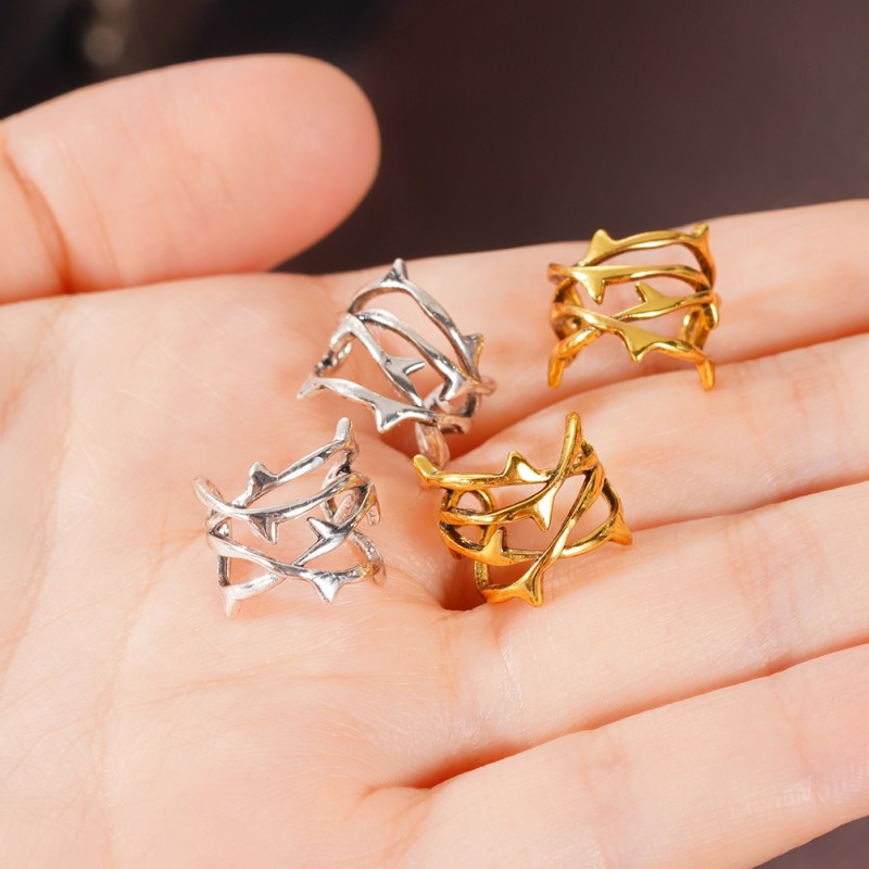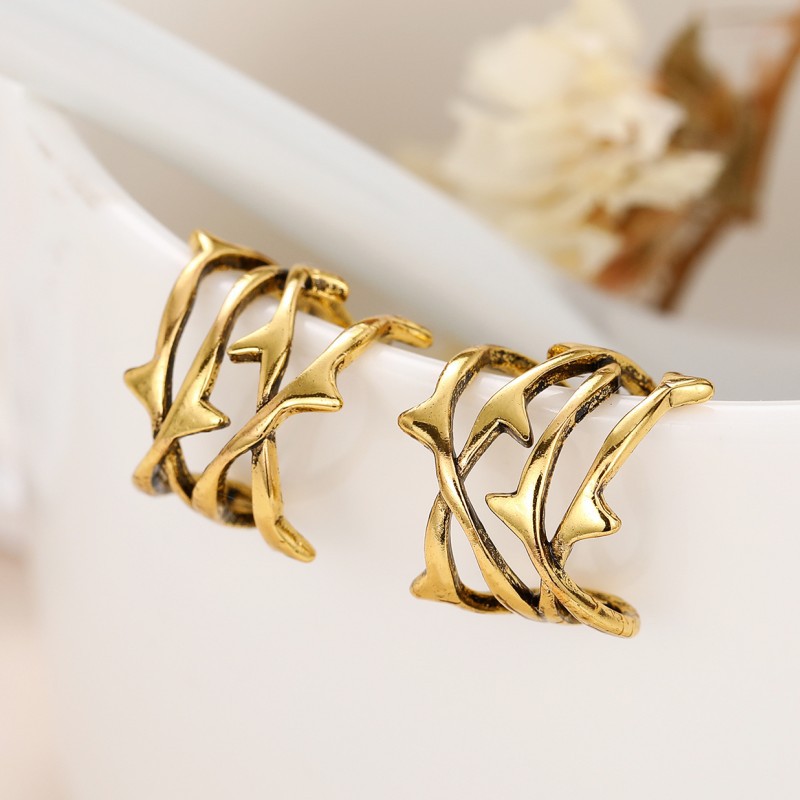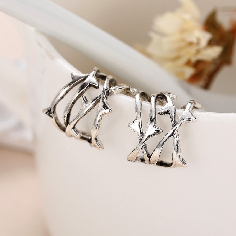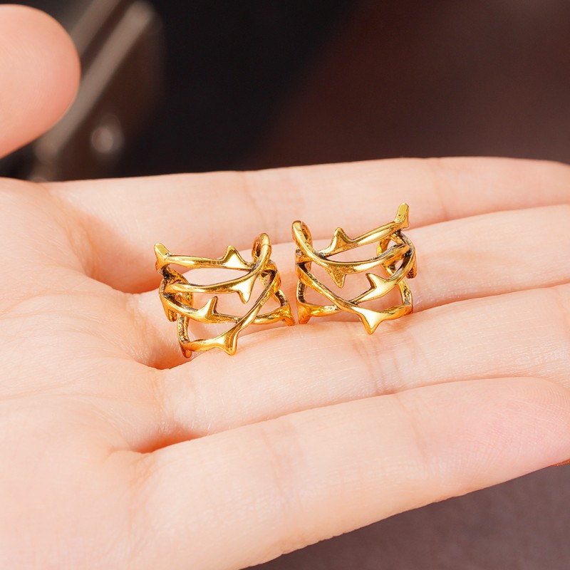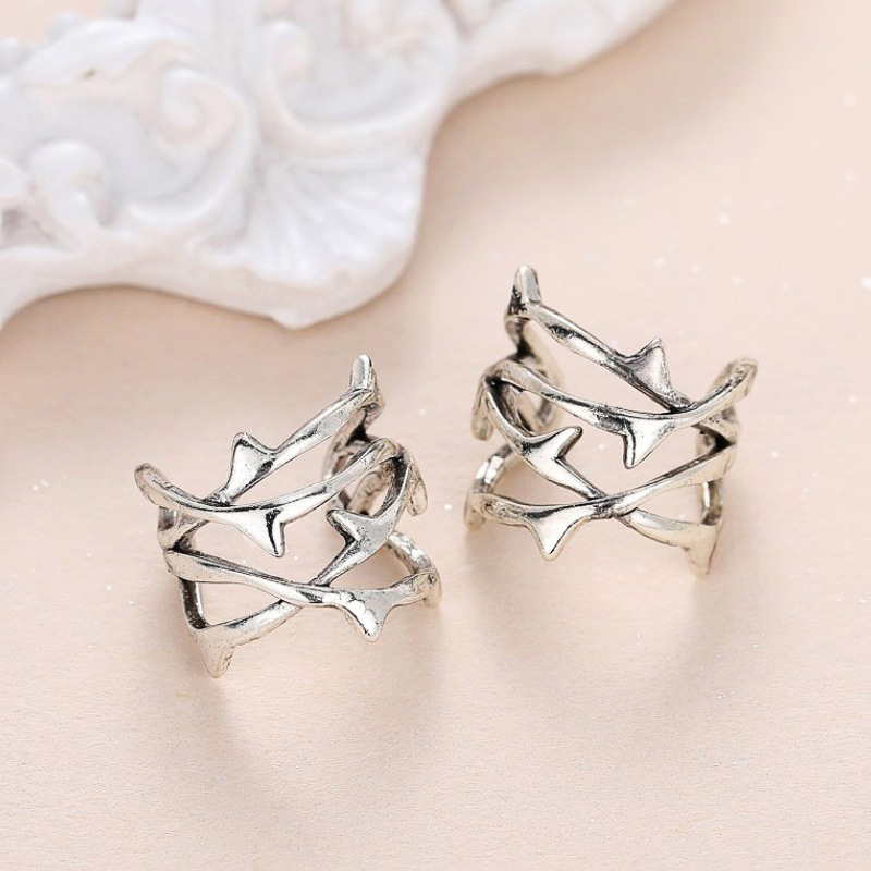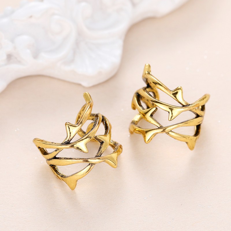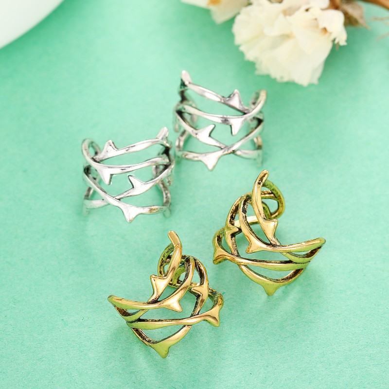 Cold style hollow thorn ear clip ring European and American punk style set without ear holes unique jewelry