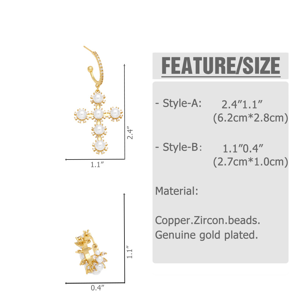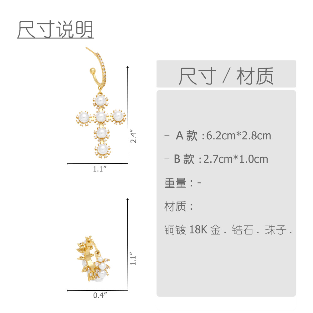 Cold style pearl geometric hoop earrings European and American personality high-end cross earrings female err11