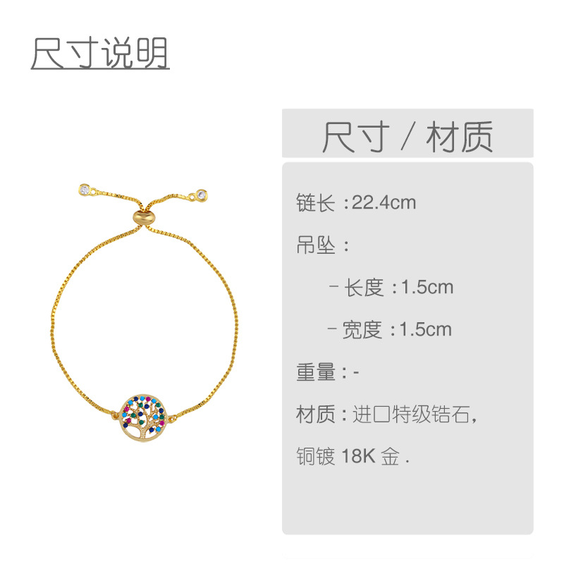 Colored gemstone jewelry hot selling creative European and American style gold-plated zircon inlaid tree of life bracelet jewelry wholesale brb57
