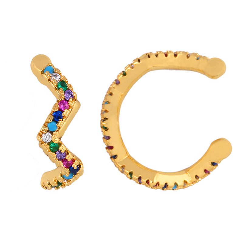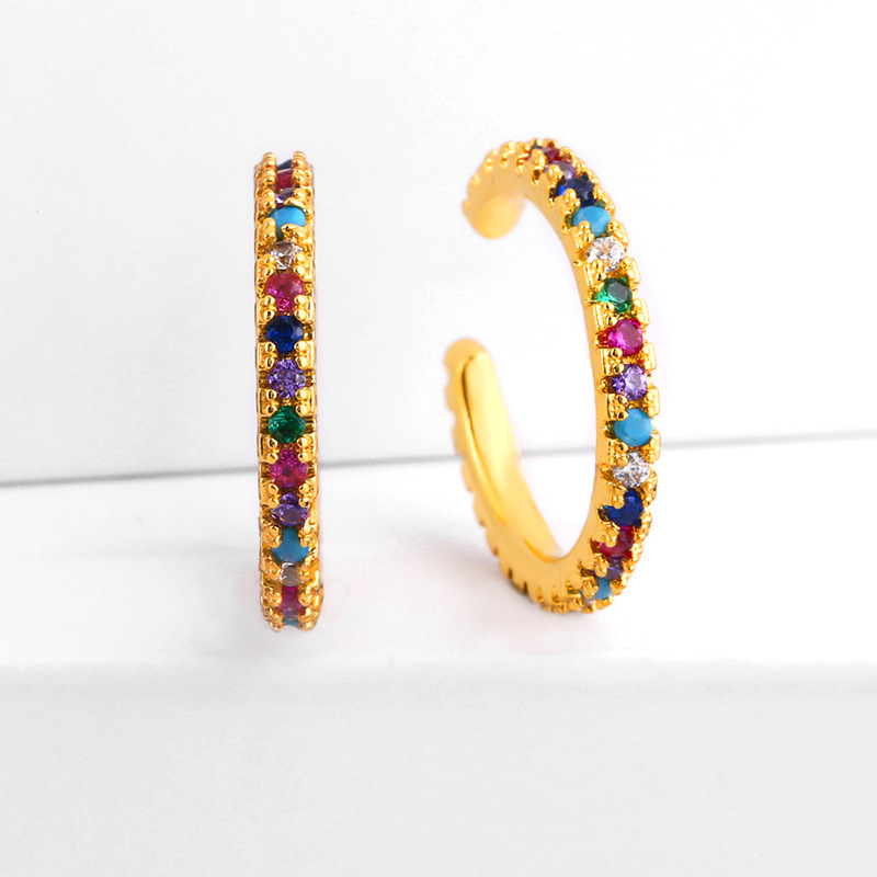 European and American simple fashion color zircon earrings niche design ear clip 18k gold plated earrings eru52