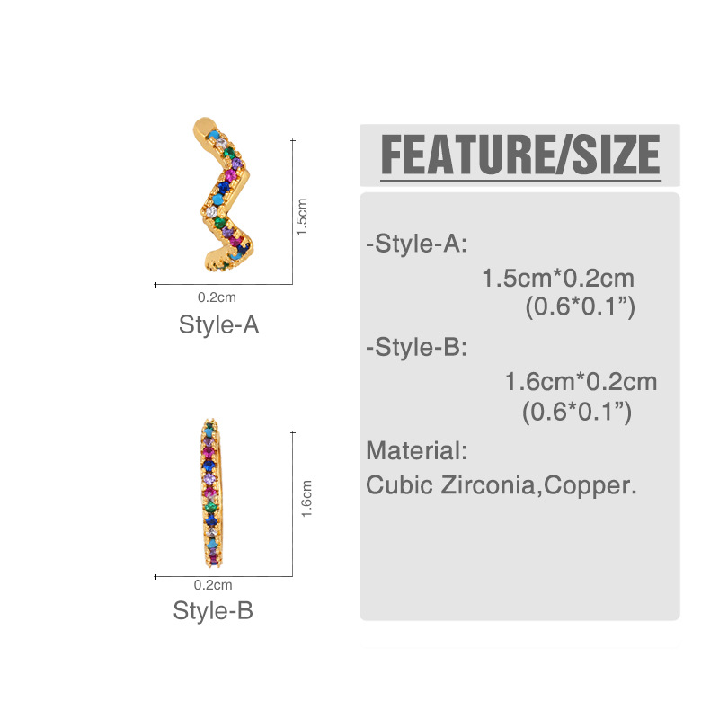 Colored zircon ear clips for women without pierced ears, European and American style, geometric small earrings, ear bone clips, earrings erq81