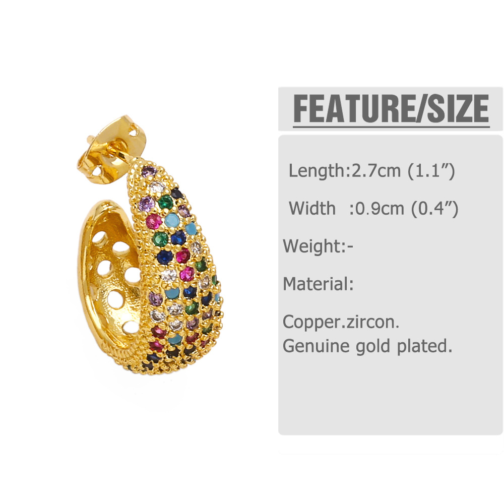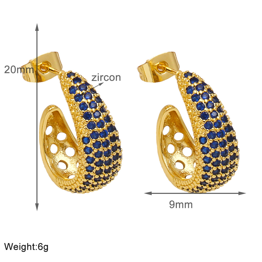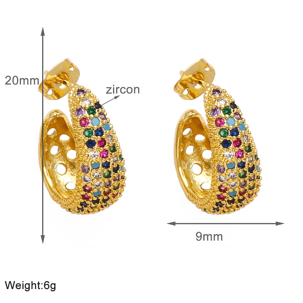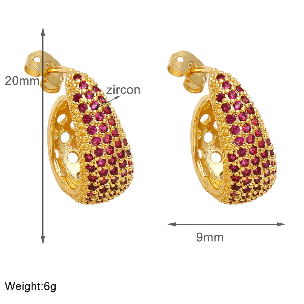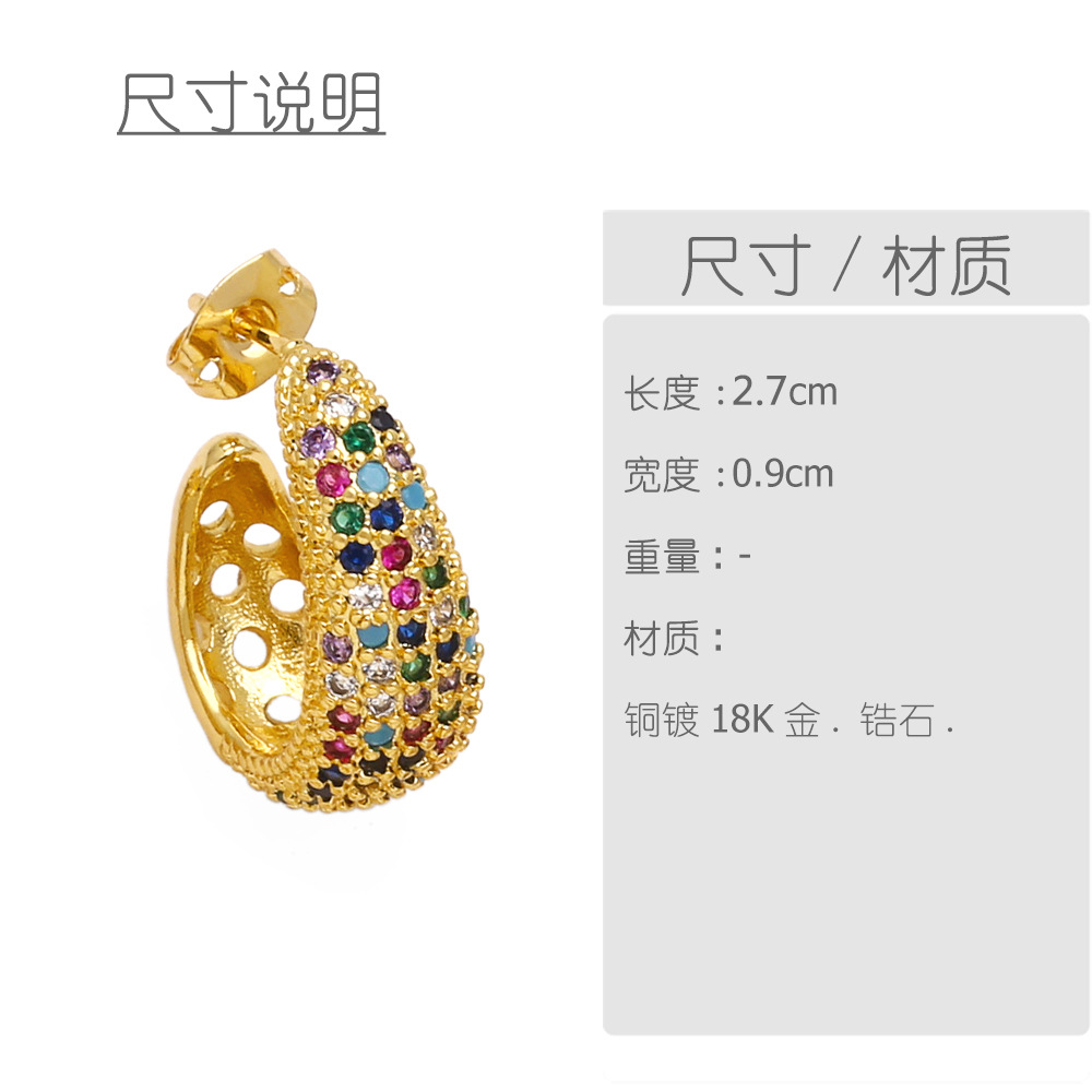 Colored zircon earrings for women, niche, light luxury, high-end copper-plated 18k gold earrings erw39