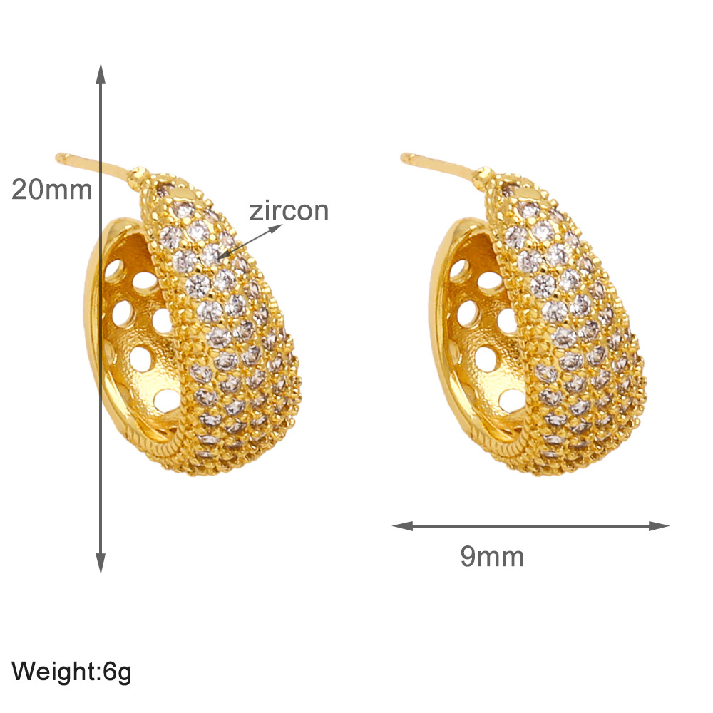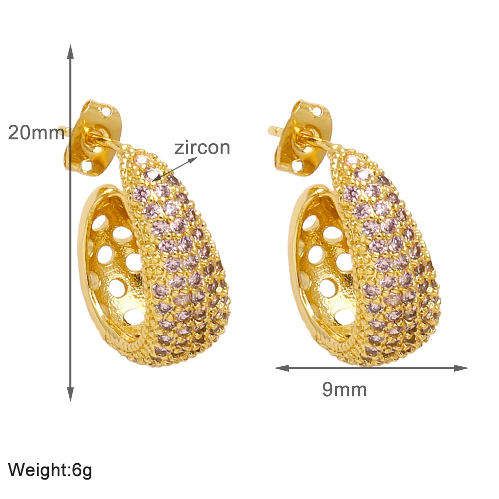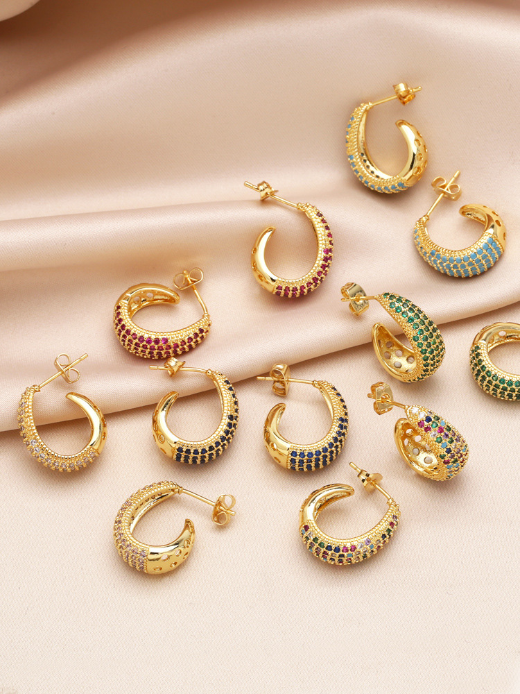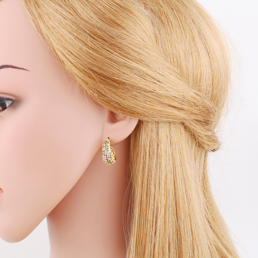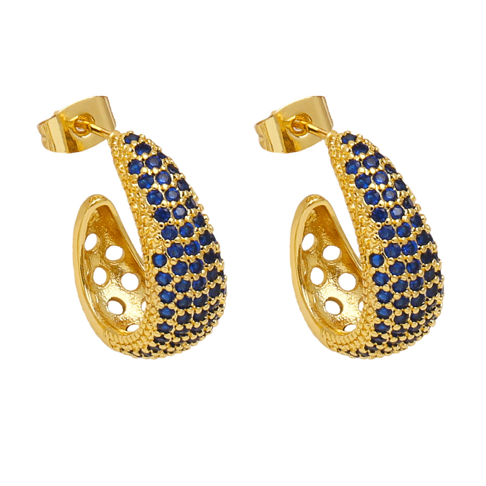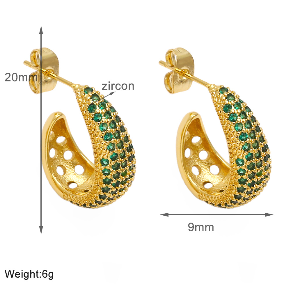 Colored zircon earrings for women, niche, light luxury, high-end copper-plated 18k gold earrings erw39