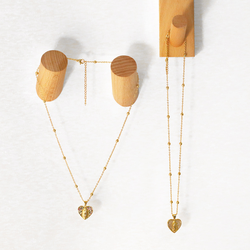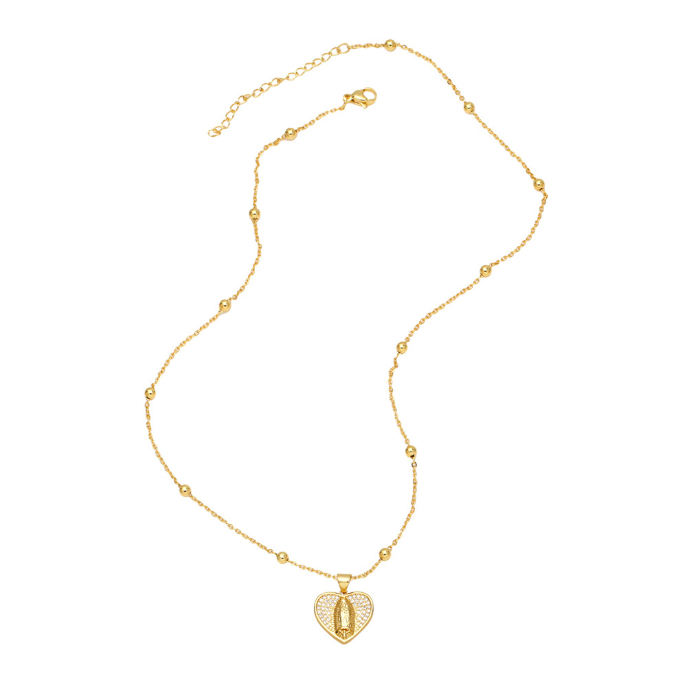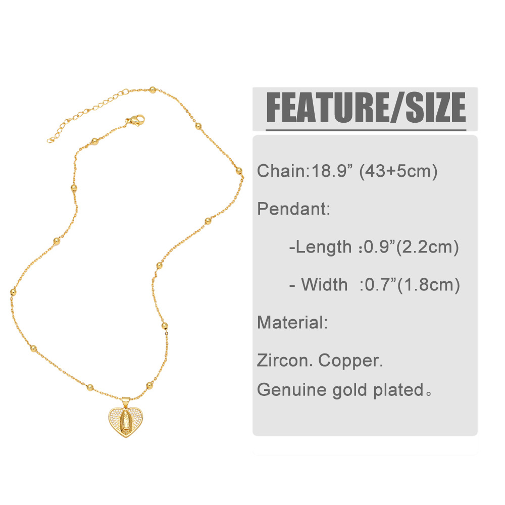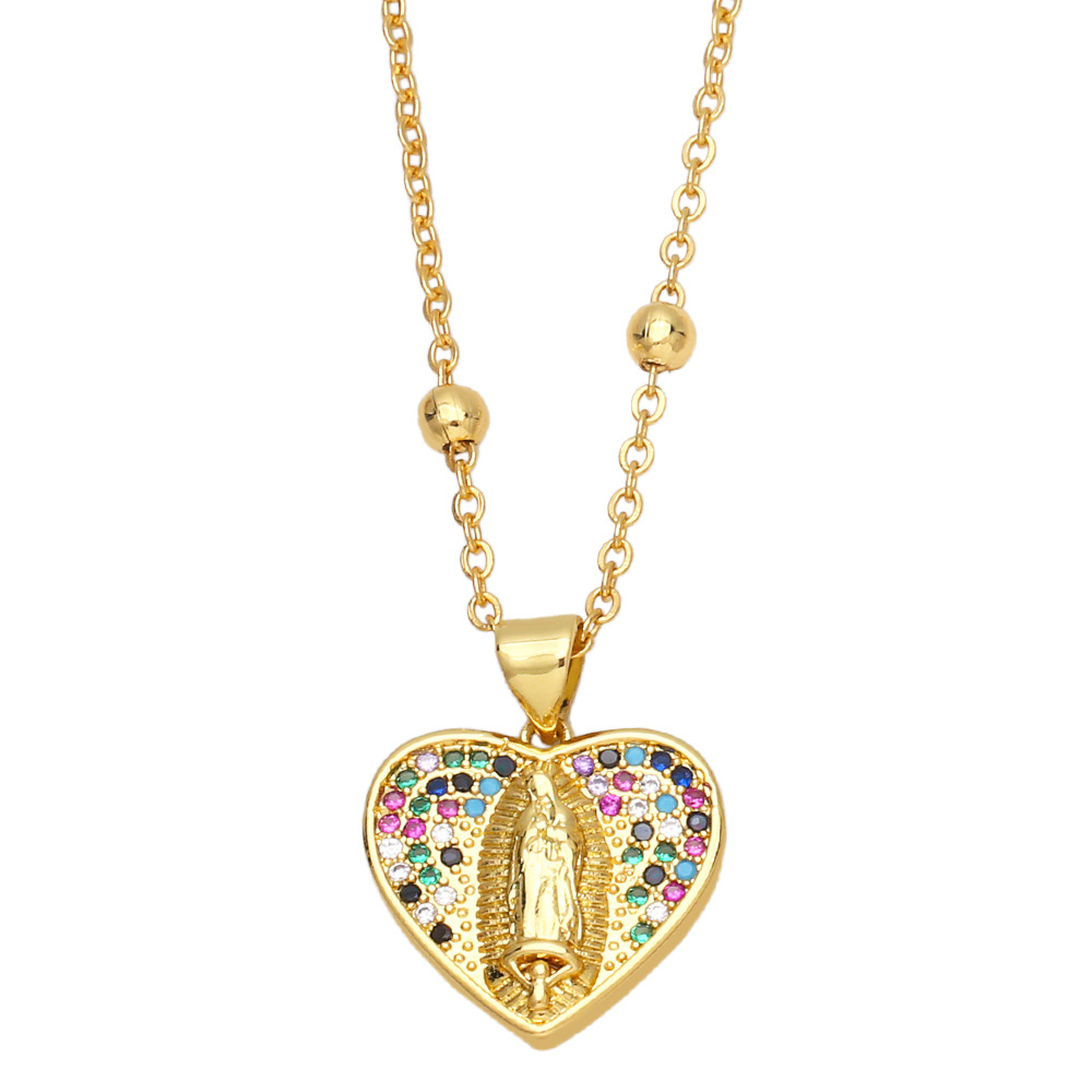 Colored zircon jewelry European and American fashion niche design love-shaped Virgin Mary necklace clavicle chain nkb217