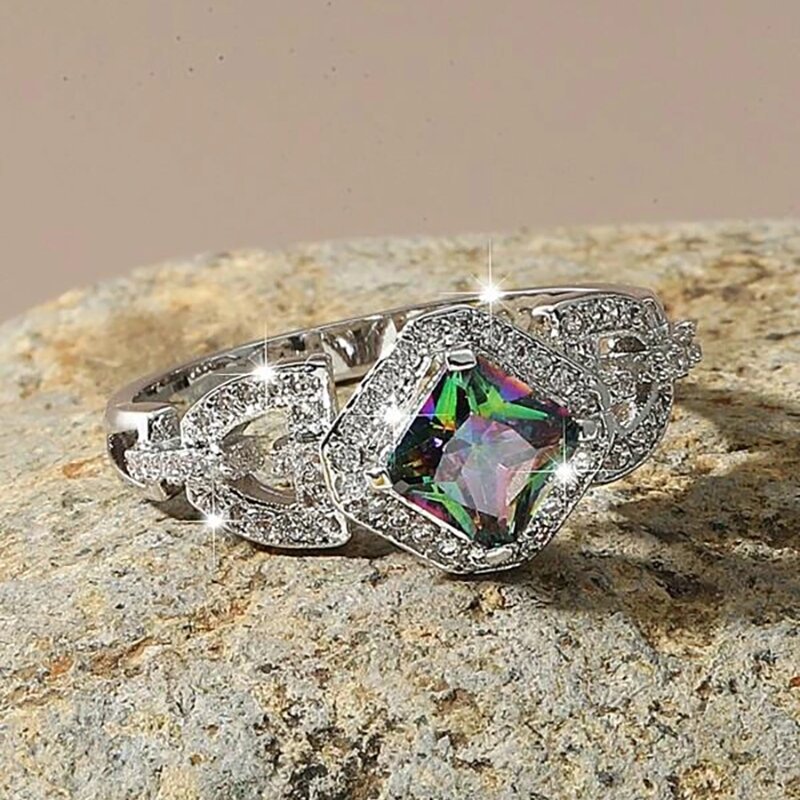 Colorful diamond rings for women light luxury high-end super flash luxury bright rings Europe and the United States hot sales