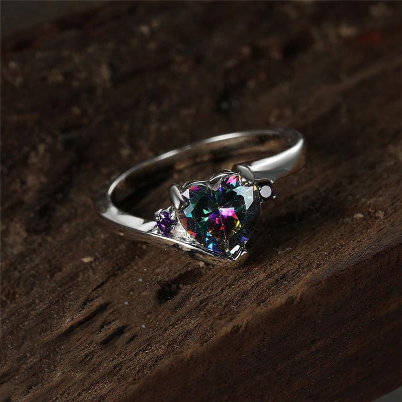 Colorful heart-shaped ring European and American creative personality rainbow peach heart ring swing arm design all-match ring