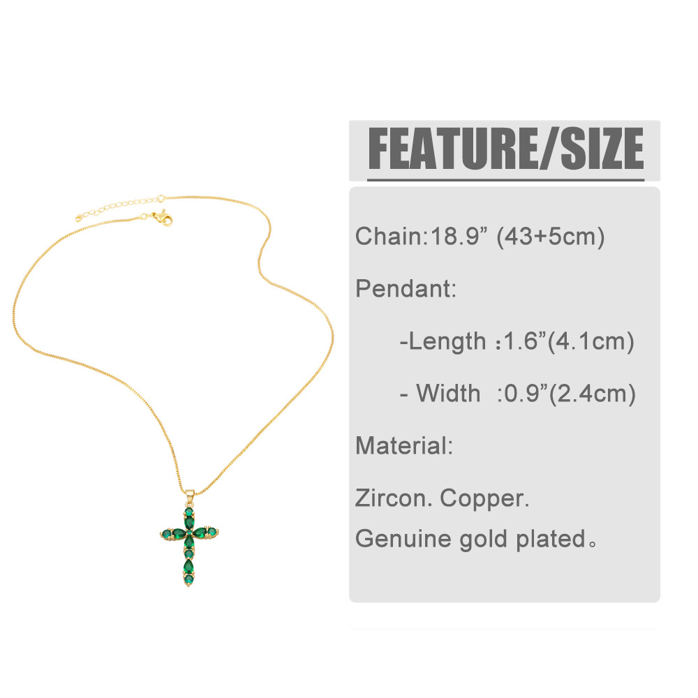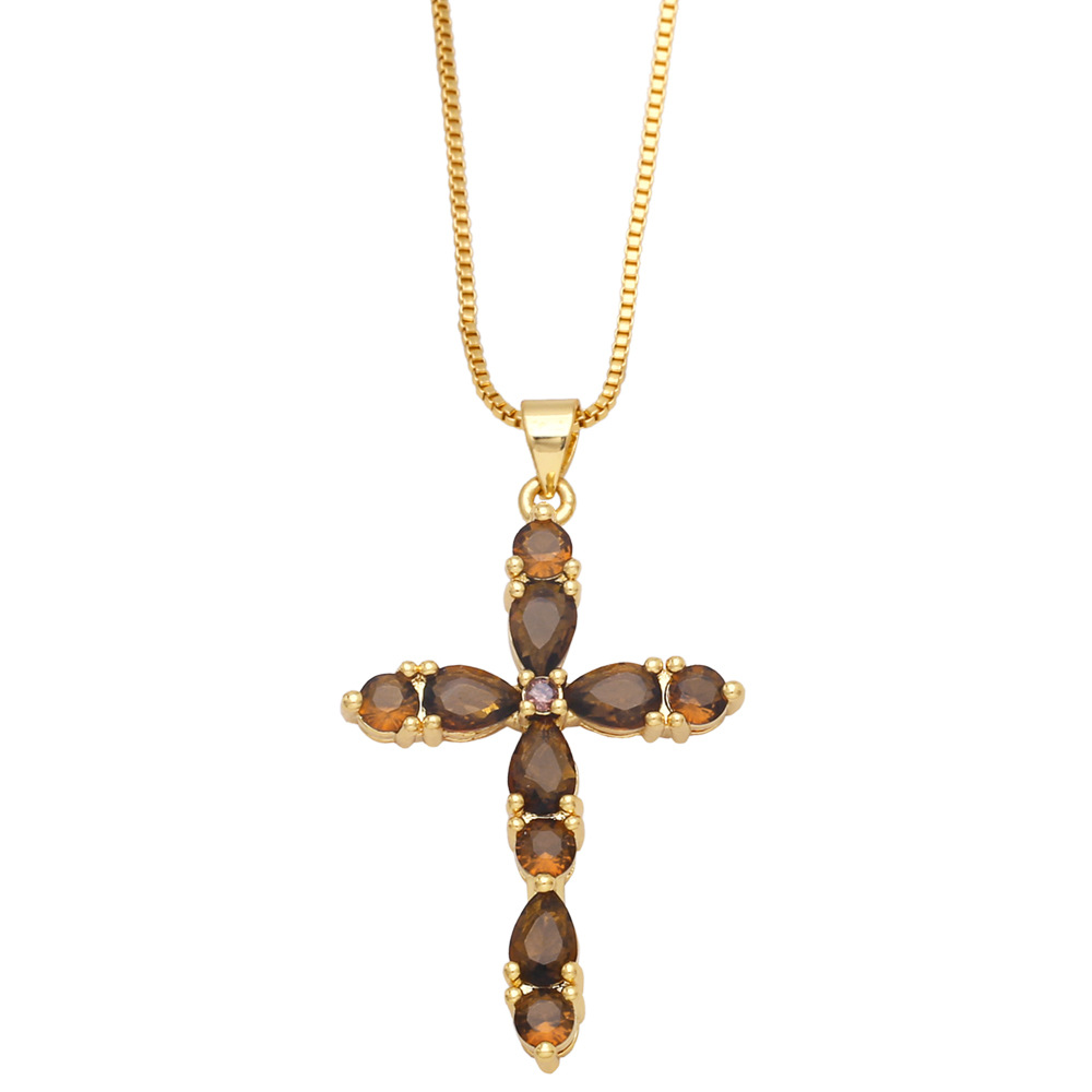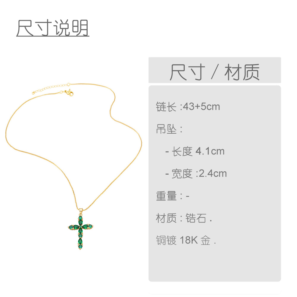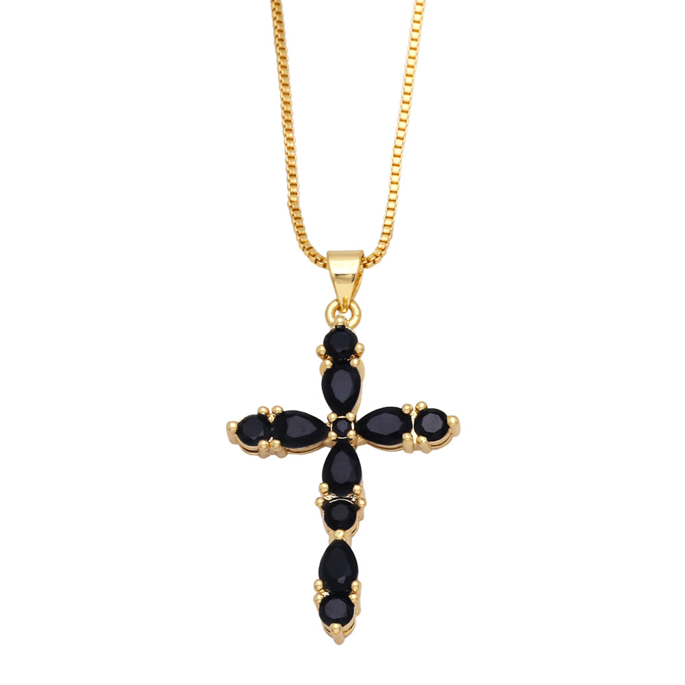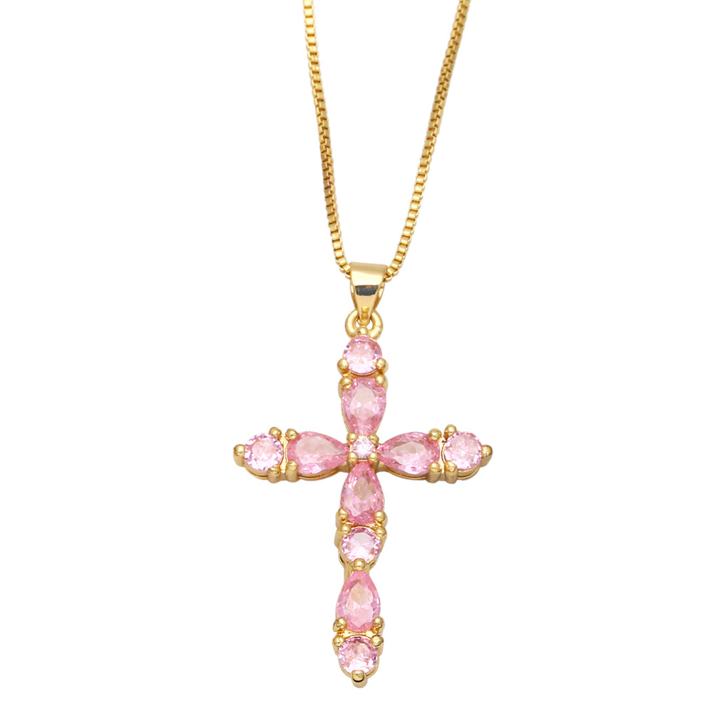 Colorful zircon cross necklace European and American hip-hop fashion diamond all-match sweater chain wholesale nkb266