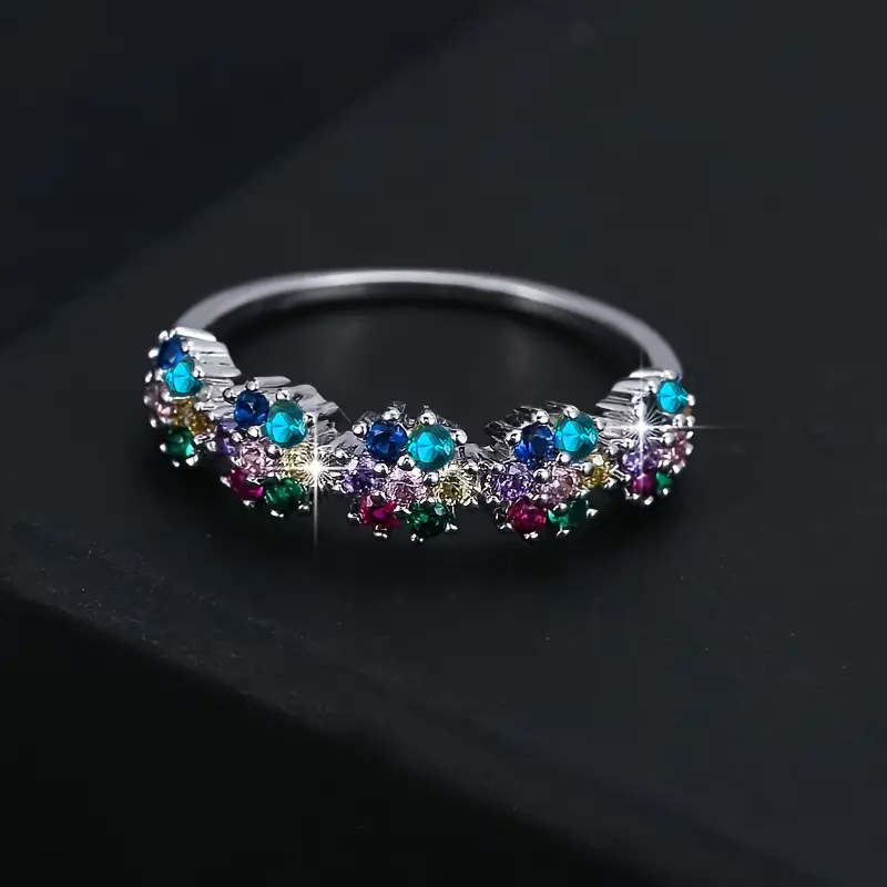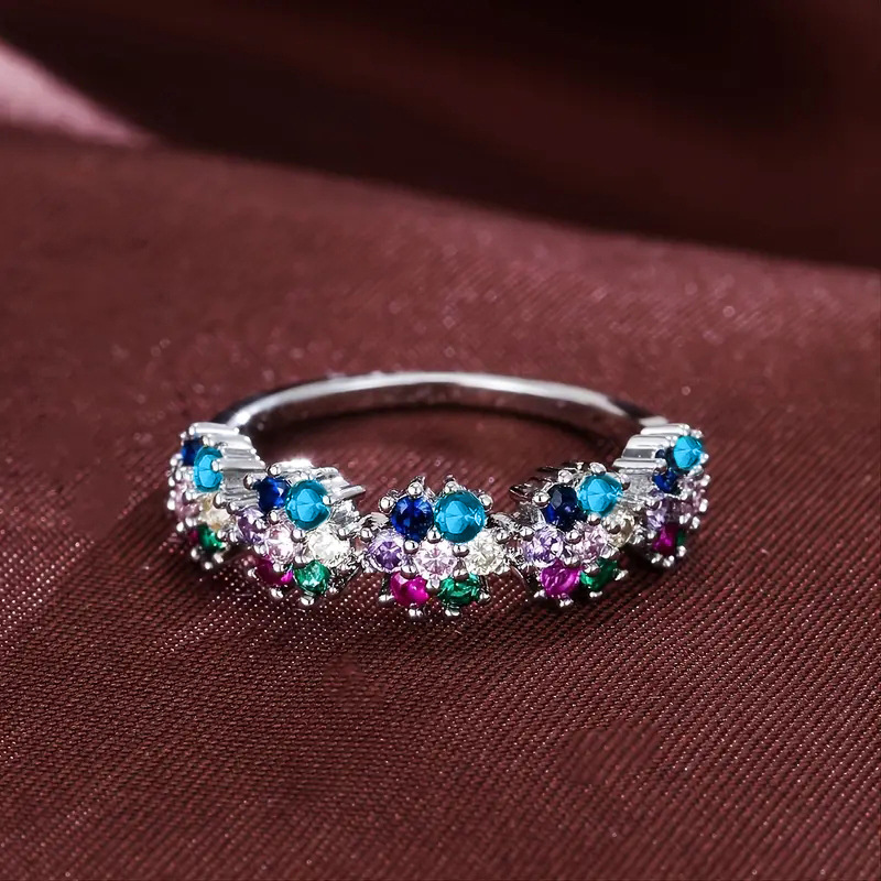 Colorful zircon metal ring niche design retro personality simple ring versatile temperament ring