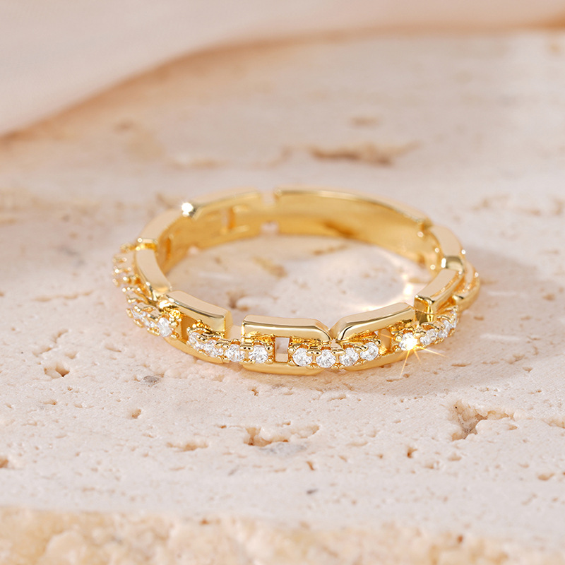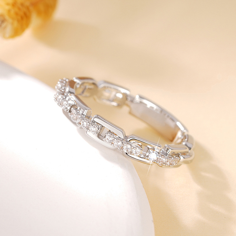 Commuter stacking ring buckle design ring for women micro inlaid zircon fashion ring daily matching simple style