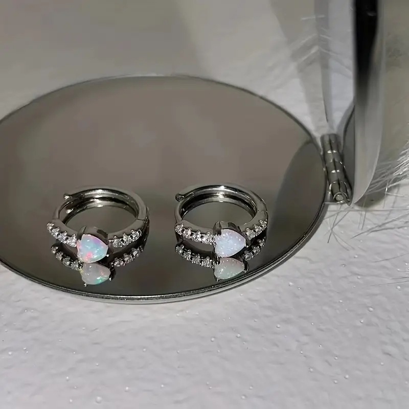Commuting fashionable heart imitation opal earrings for women sweet exquisite elegant earrings micro inlaid zircon jewelry