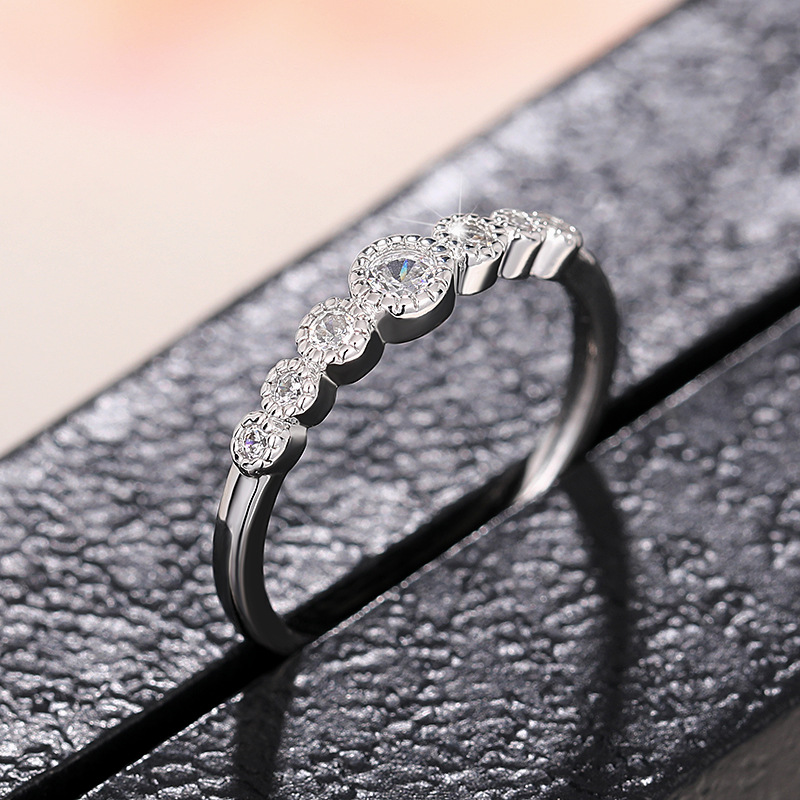Micro-inlaid celebrity style classic all-match popular ring six-claw zircon wedding ring European and American style light luxury ring