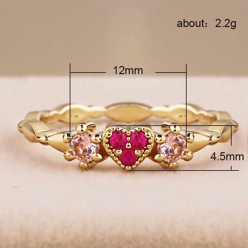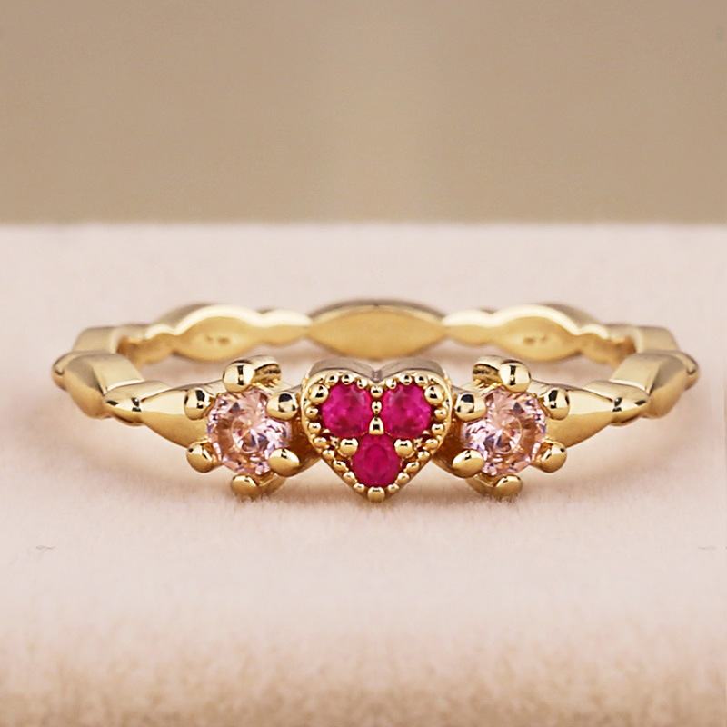 Copper gold-plated inlaid red zircon heart-shaped ring female small fresh agete jewelry crown tail ring jewelry