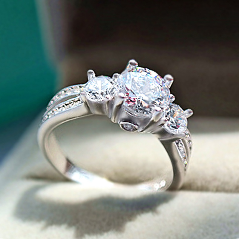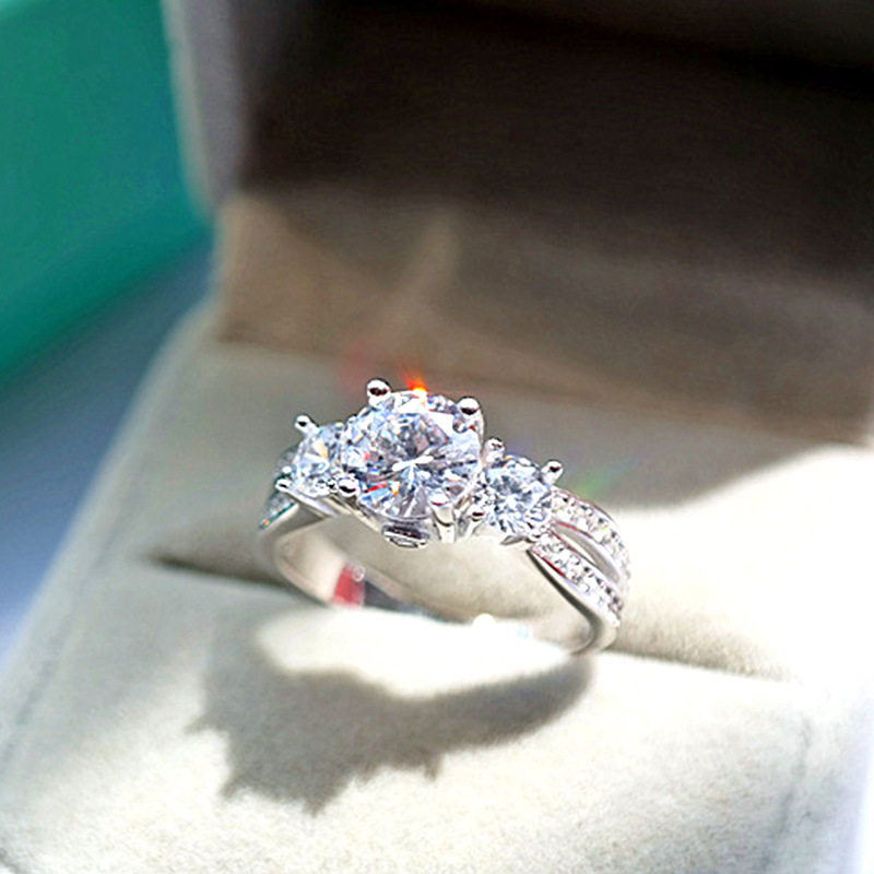 Micro-inlaid celebrity style classic all-match popular ring six-claw zircon wedding ring European and American style light luxury ring
