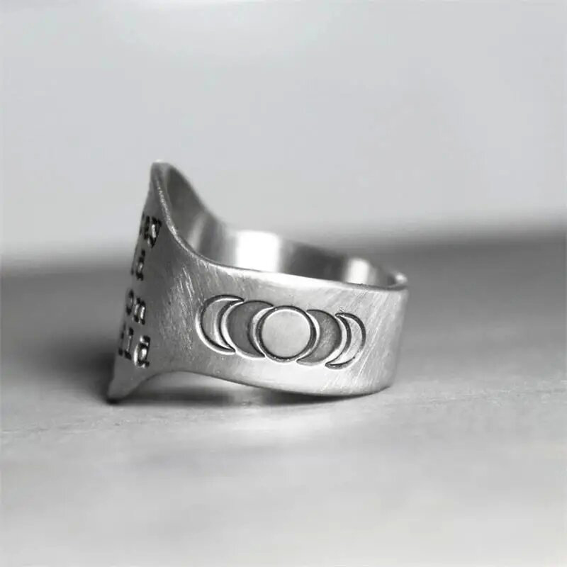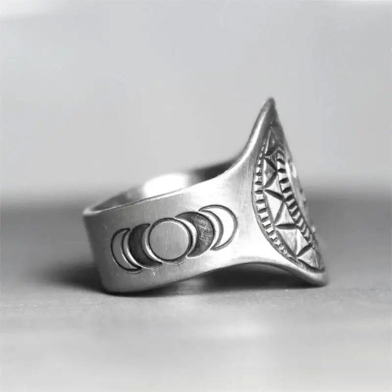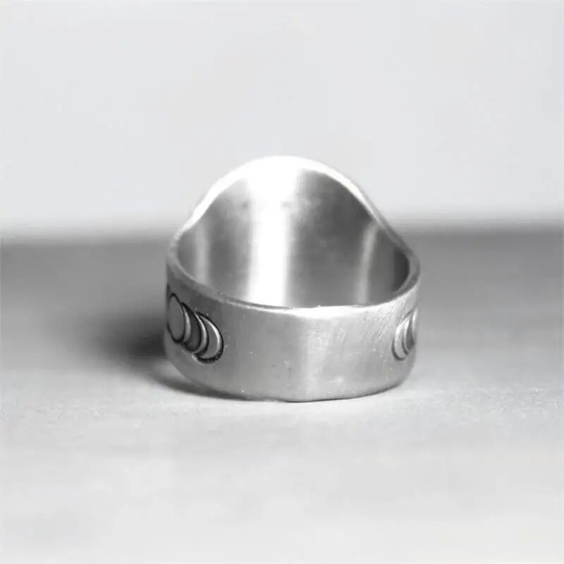 Creative disc carved moon ring European, American and Thai silver Indian style ring unisex