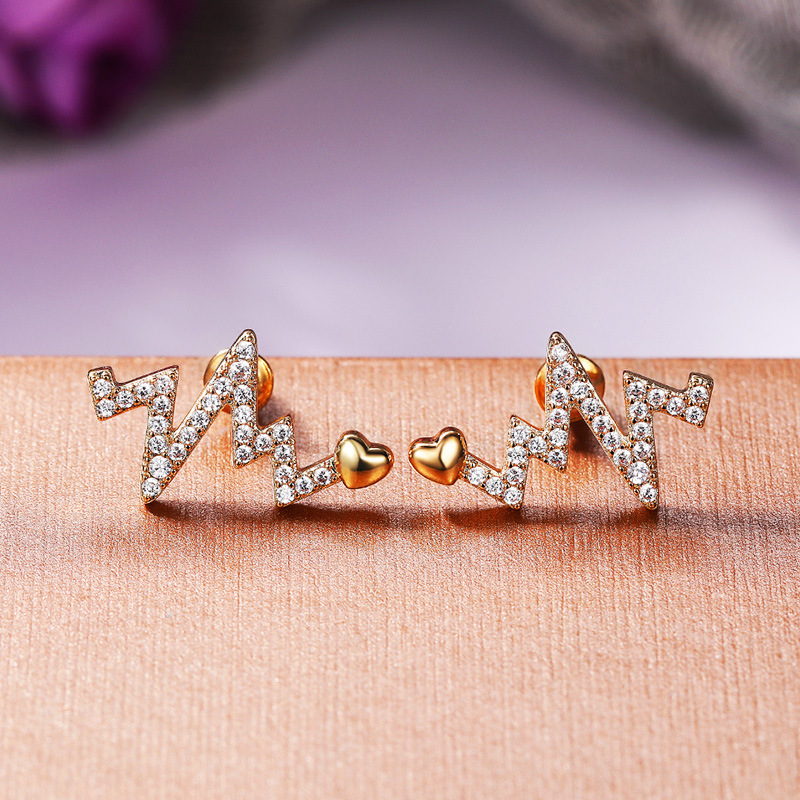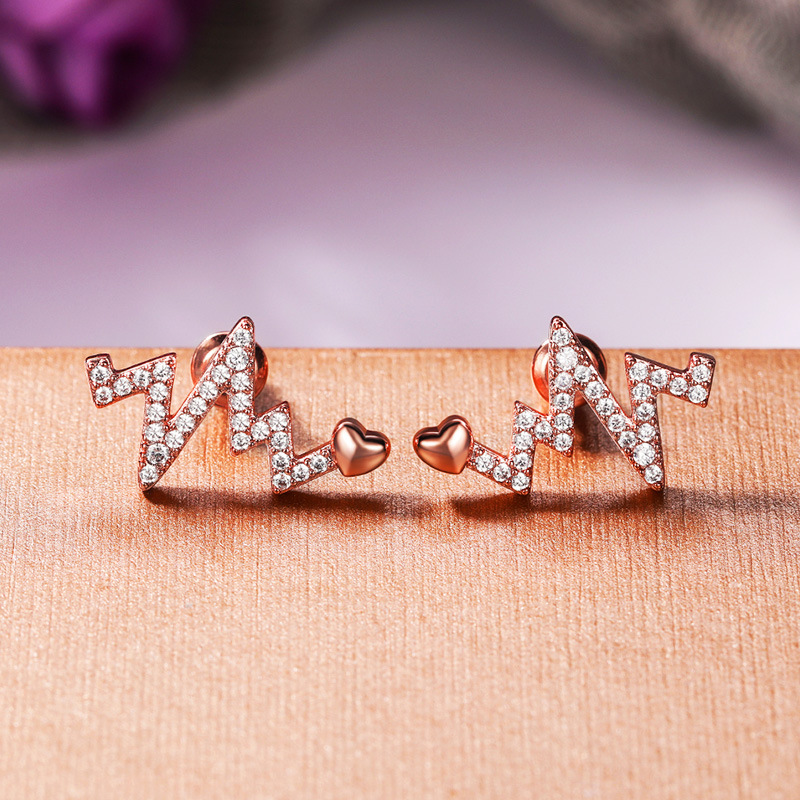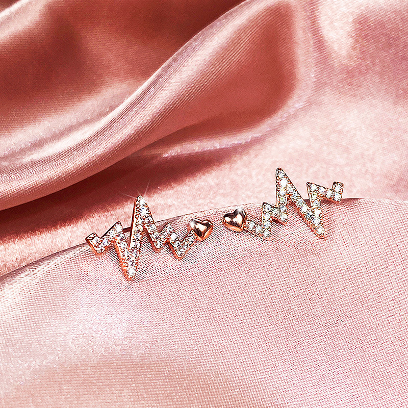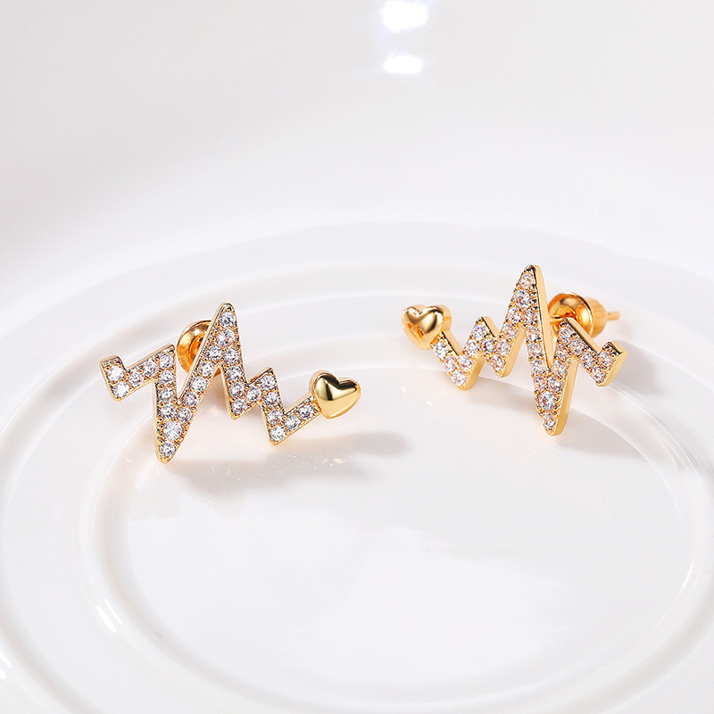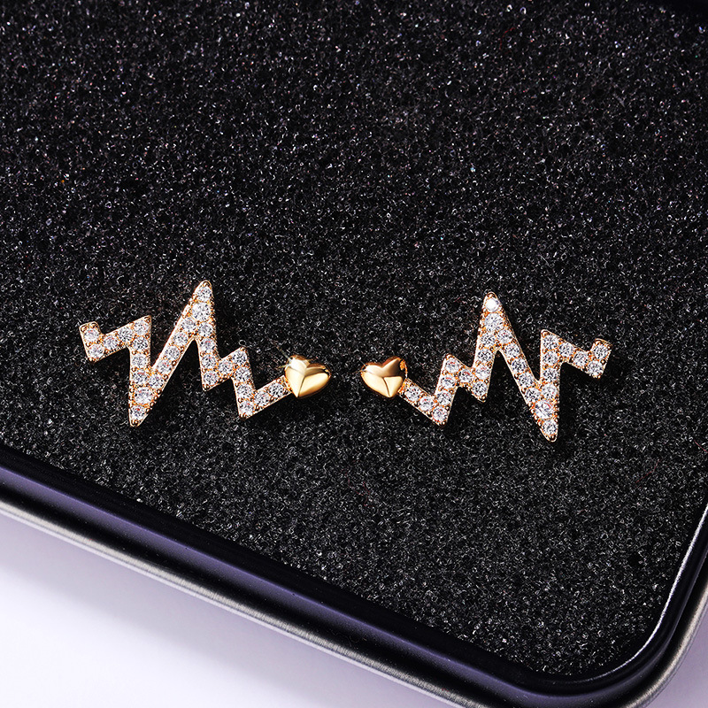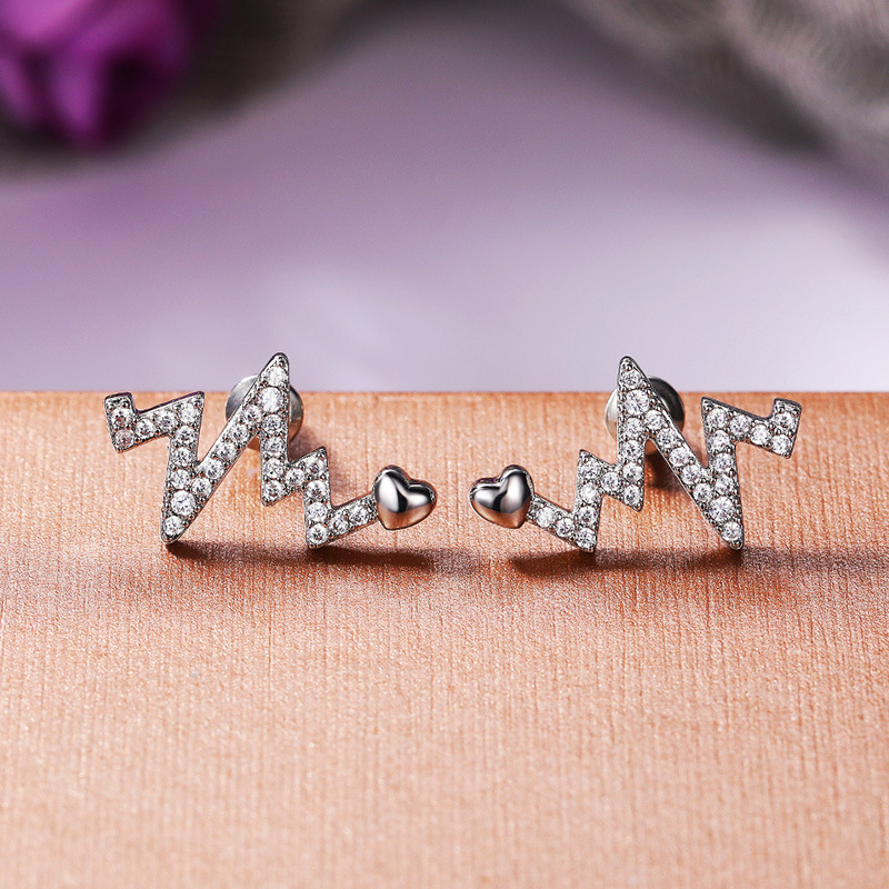 Creative electrocardiogram heartbeat earrings, new style inlaid zircon heartbeat earrings, simple and fashionable zircon lightning earrings