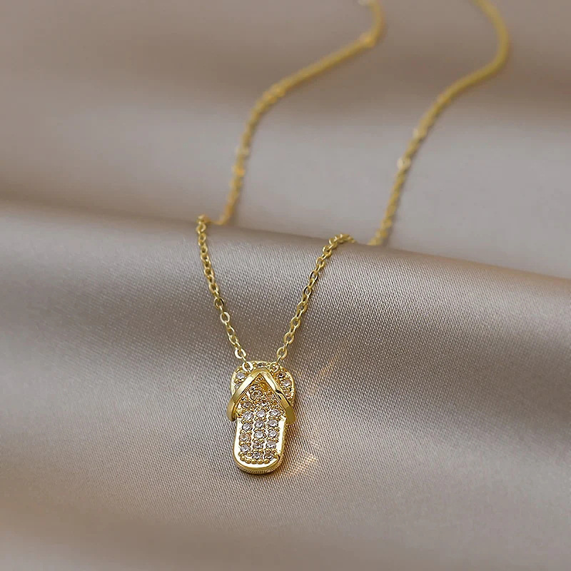 Creative, exquisite and cute slipper necklace, micro-inlaid zircon necklace, hot selling hot item for daily wear
