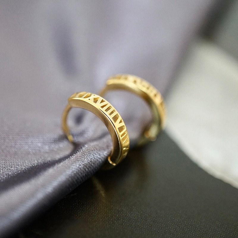 Creative hollow Roman numeral earrings simple and versatile commuter earrings temperament circle earrings for women