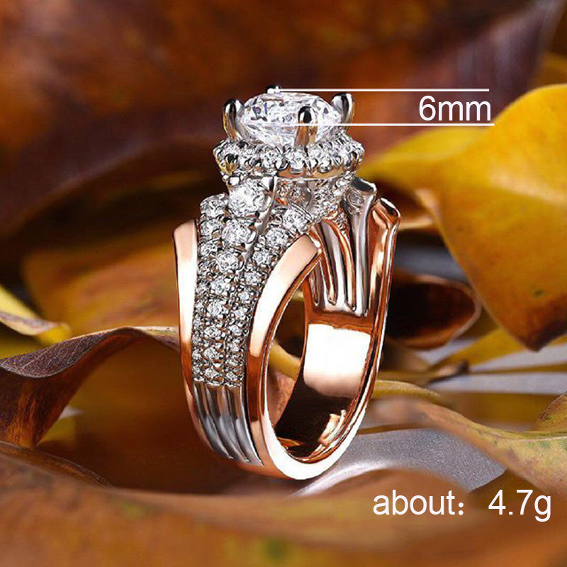 Creative hot selling new accessories fashion micro inlaid zircon two-tone ring women's jewelry