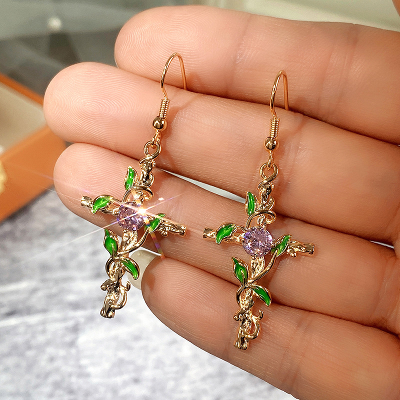 Creative leaf-wrapped oil-dripping zircon earrings factory direct supplier jewelry wholesale