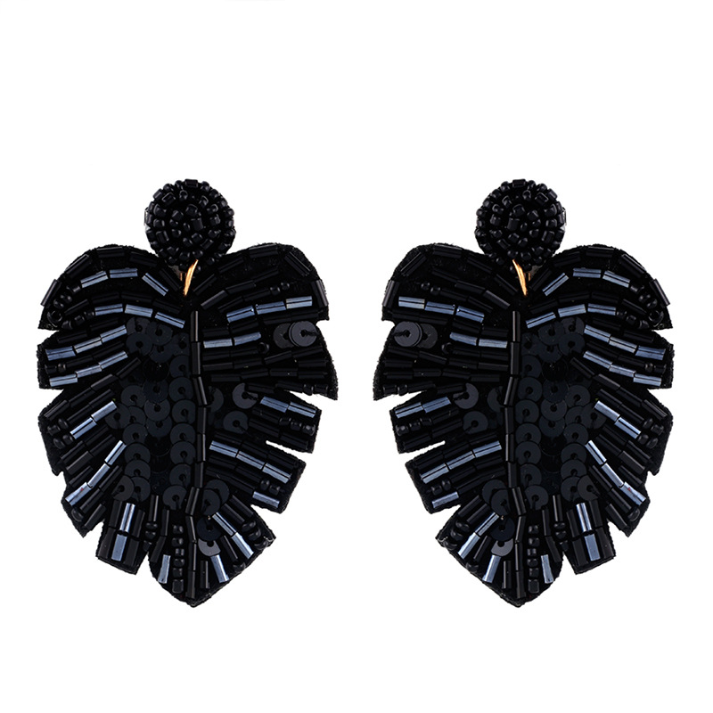Creative new earrings Bohemian leaf rice bead earrings female exaggerated personality earrings source erq85