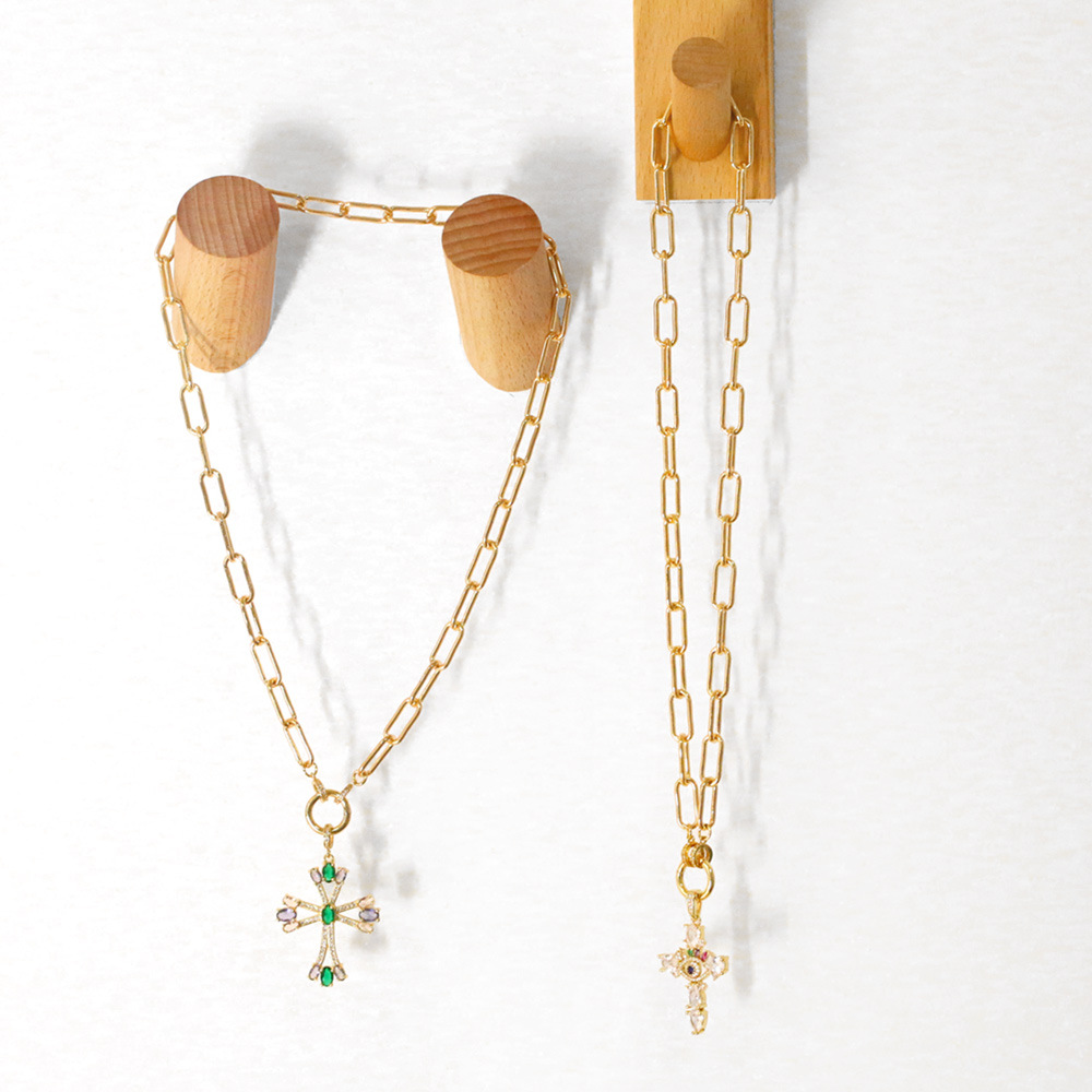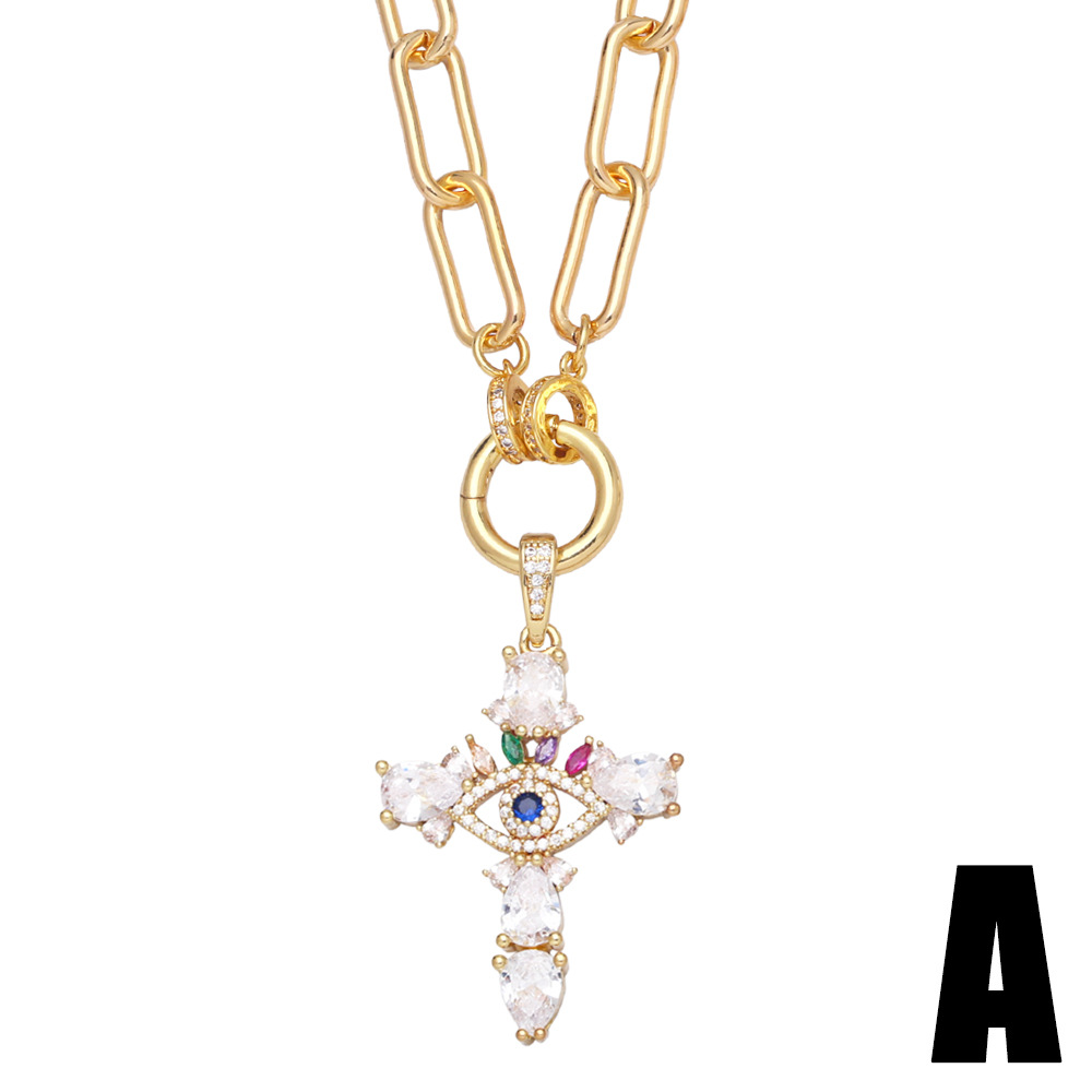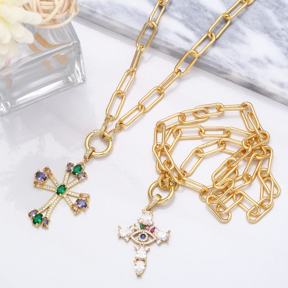 Creative personality cross devil eye pendant necklace European and American trendy niche hip hop clavicle chain nkb092
