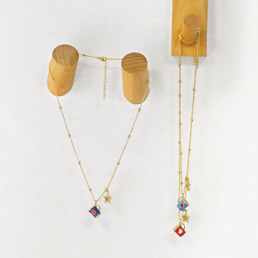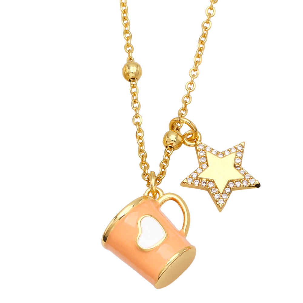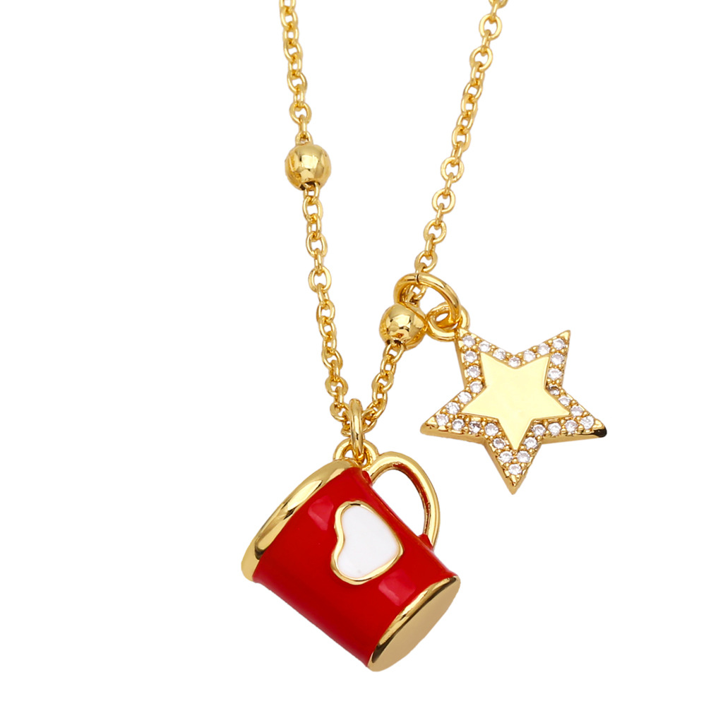 Creative personality design five-pointed star cup double pendant necklace female hot selling necklace nkb311