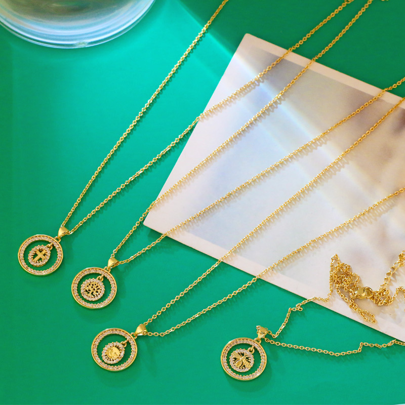 Creative personality niche round hollow cross tree of life pendant necklace eye bee clavicle chain nkv77