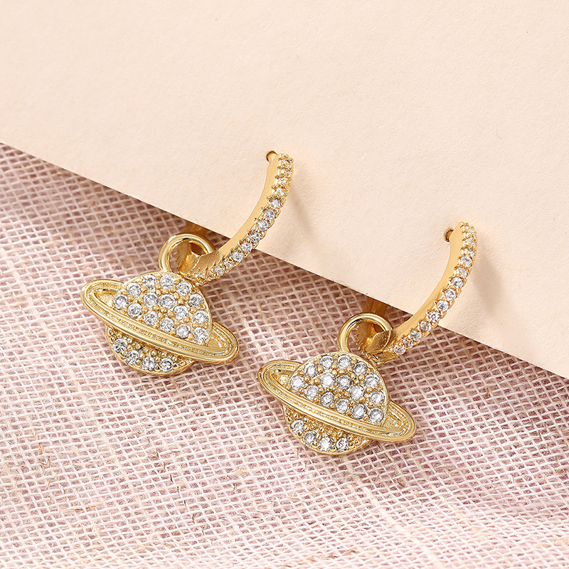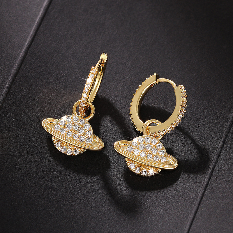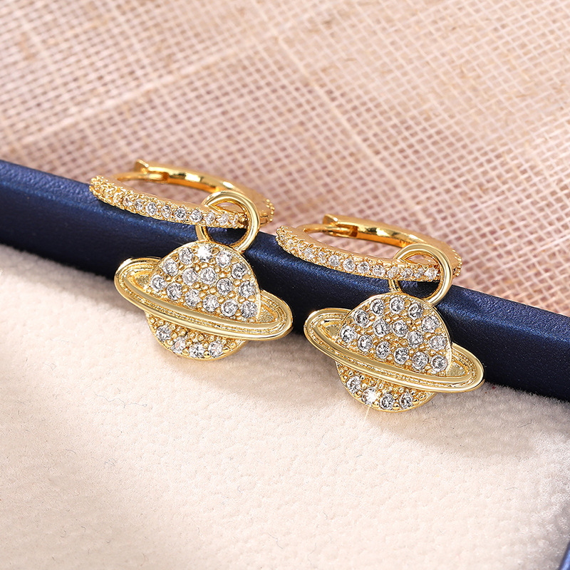 Creative planet metal micro-inlaid earrings are smart and versatile accessories with a high-end style and are a hot-selling item.