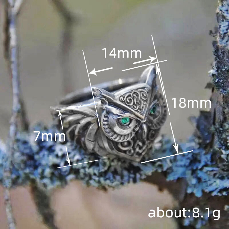Creative retro dark personality ring 3D animal owl ring punk hip-hop trend network celebrity ring