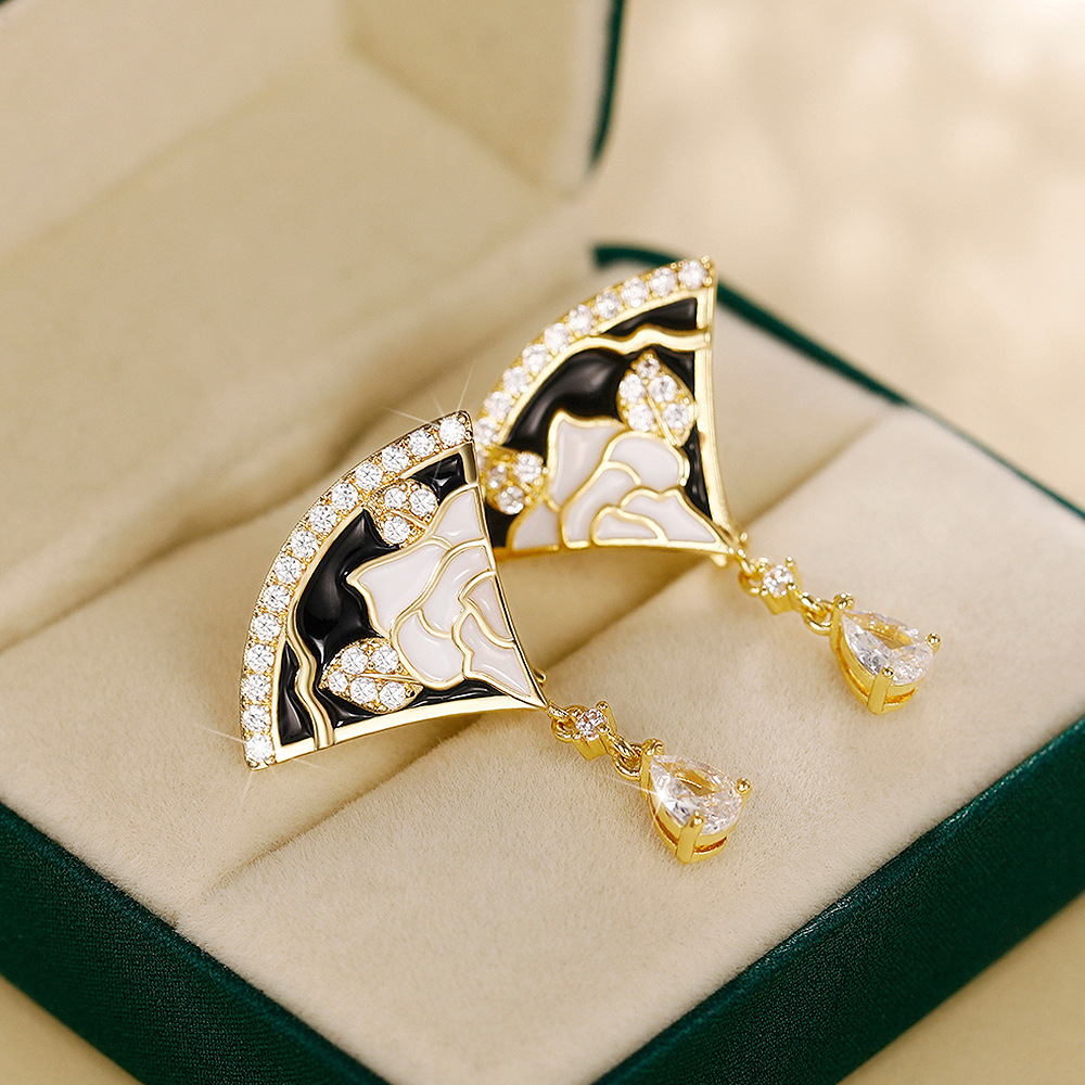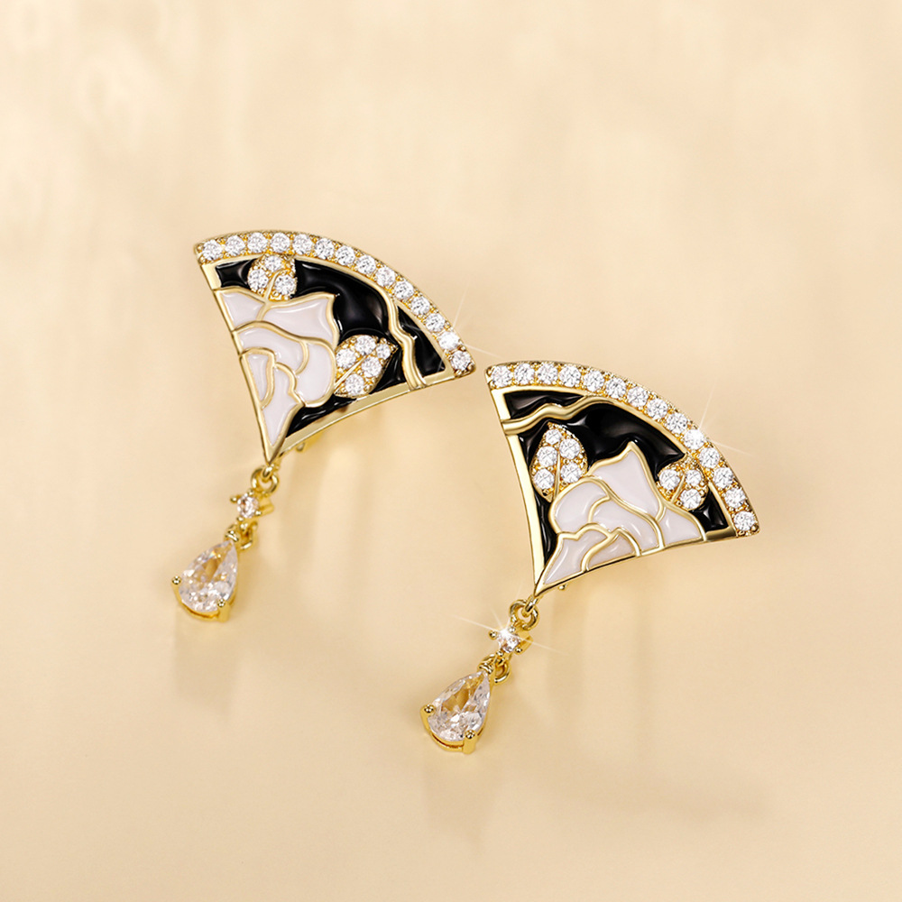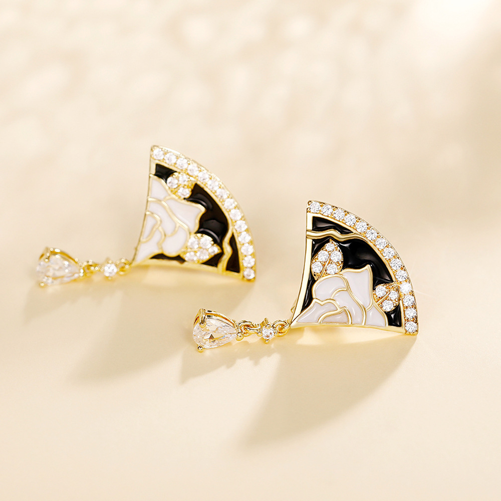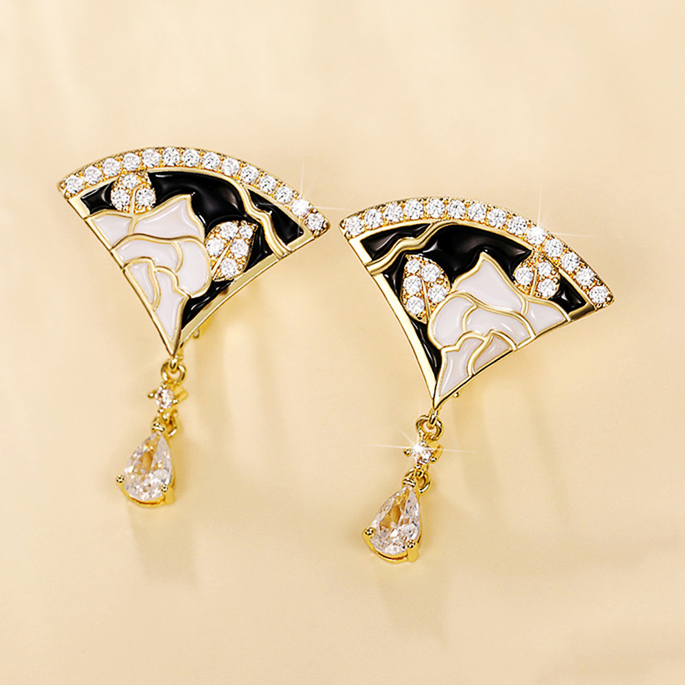 Creative scallop earrings for women fashion floral black and white handmade enamel earrings party accessories supply