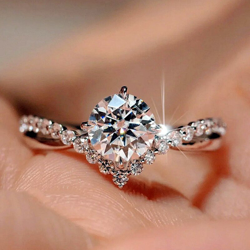 Micro-inlaid celebrity style classic all-match popular ring six-claw zircon wedding ring European and American style light luxury ring
