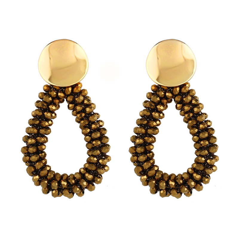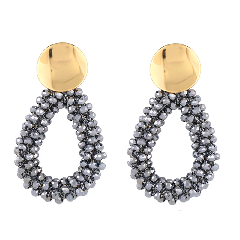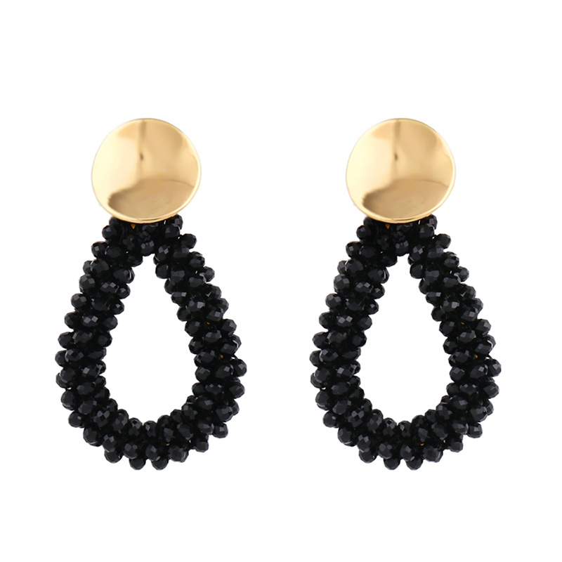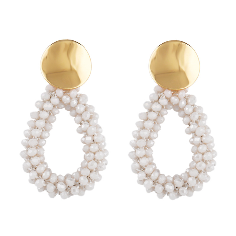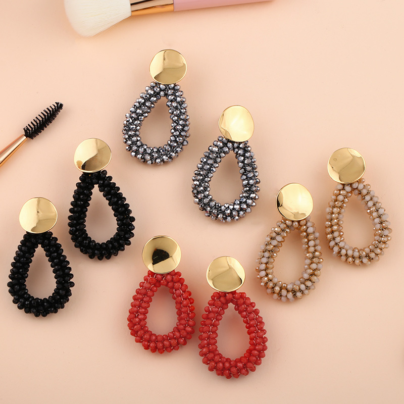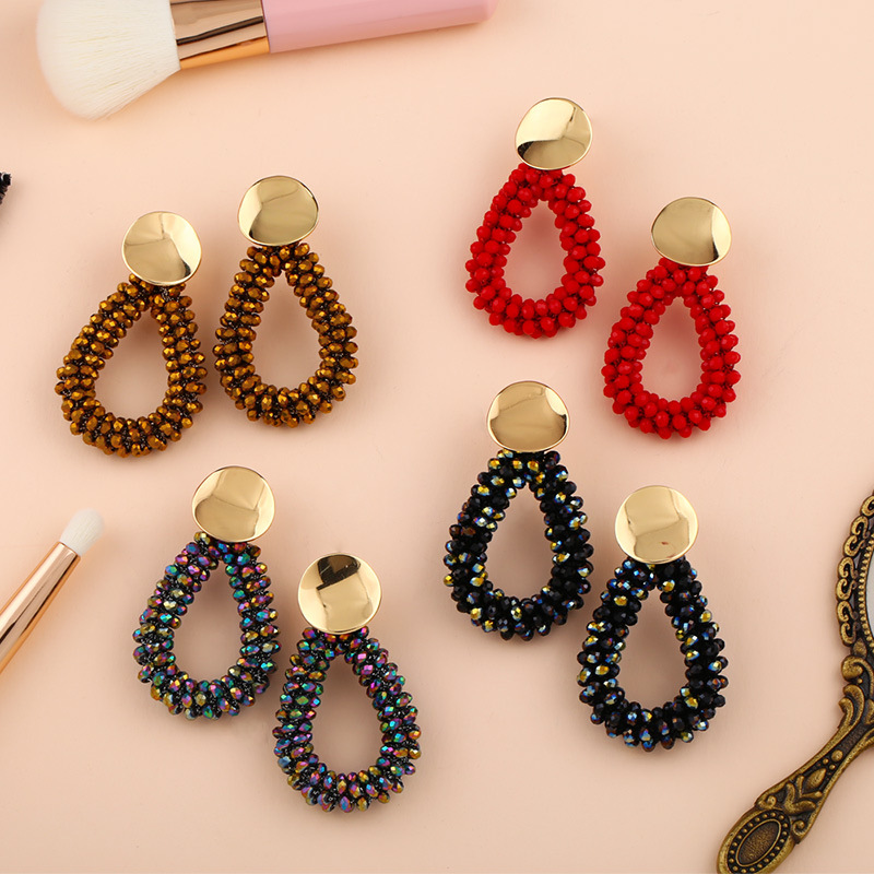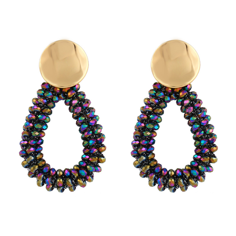 Crystal rice bead earrings for women water drop geometric earrings colorful beads earrings alloy ear needle erq07