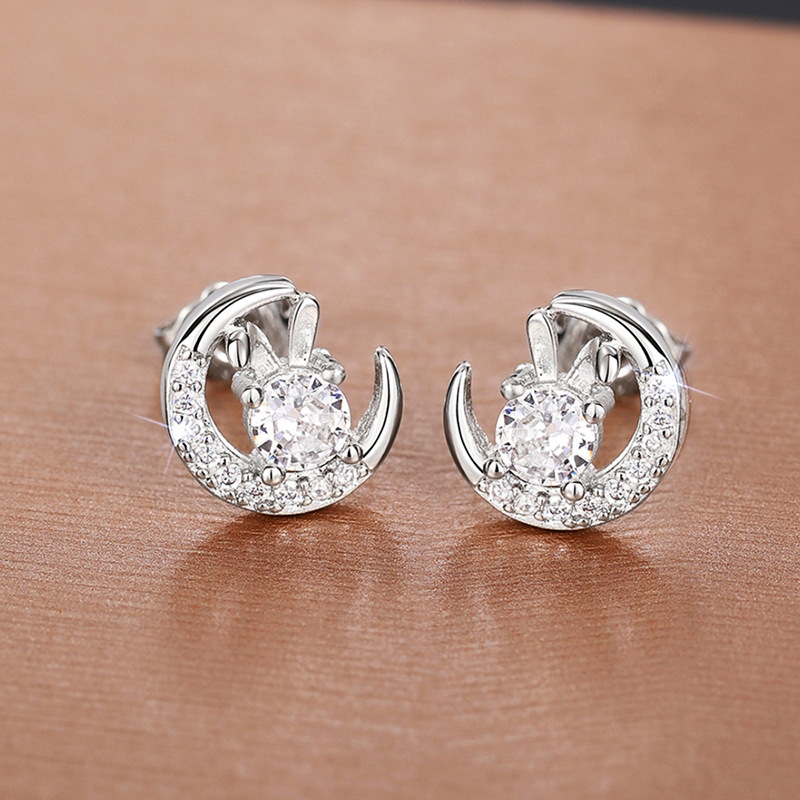 Cute and exquisite little rabbit earrings for women, sweet and everyday ladies' jewelry, popular style zircon jewelry