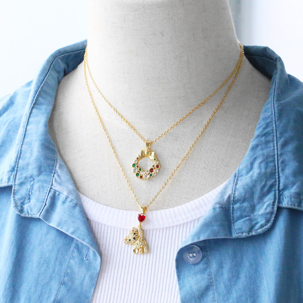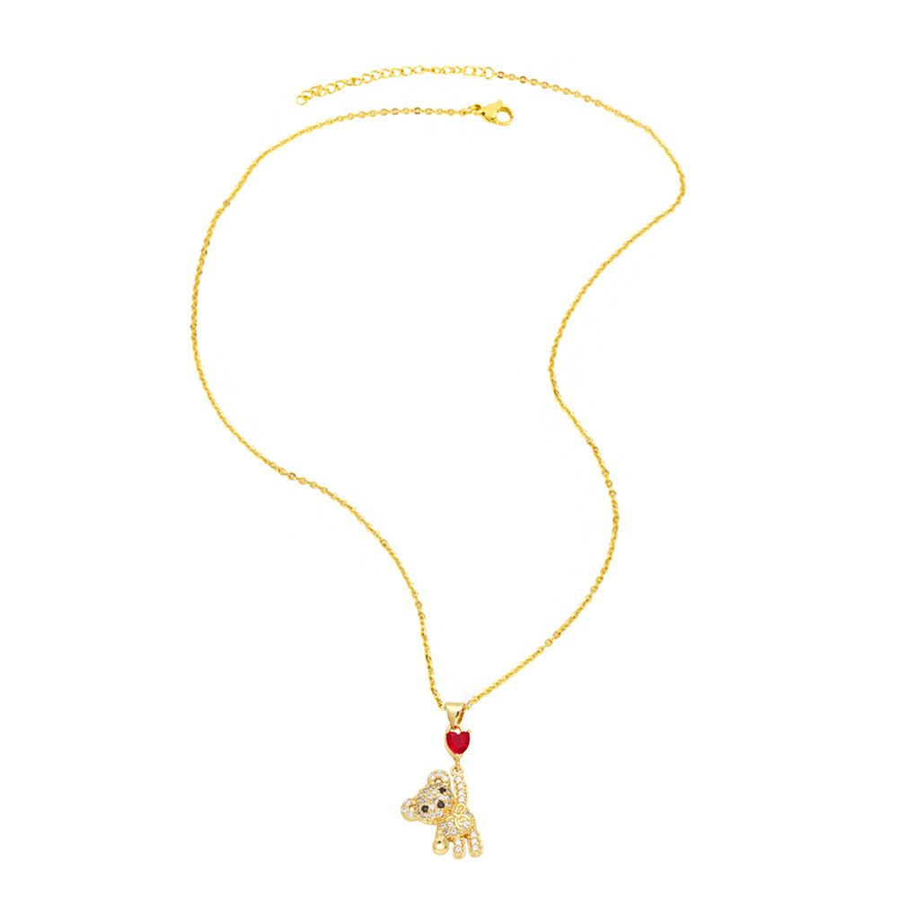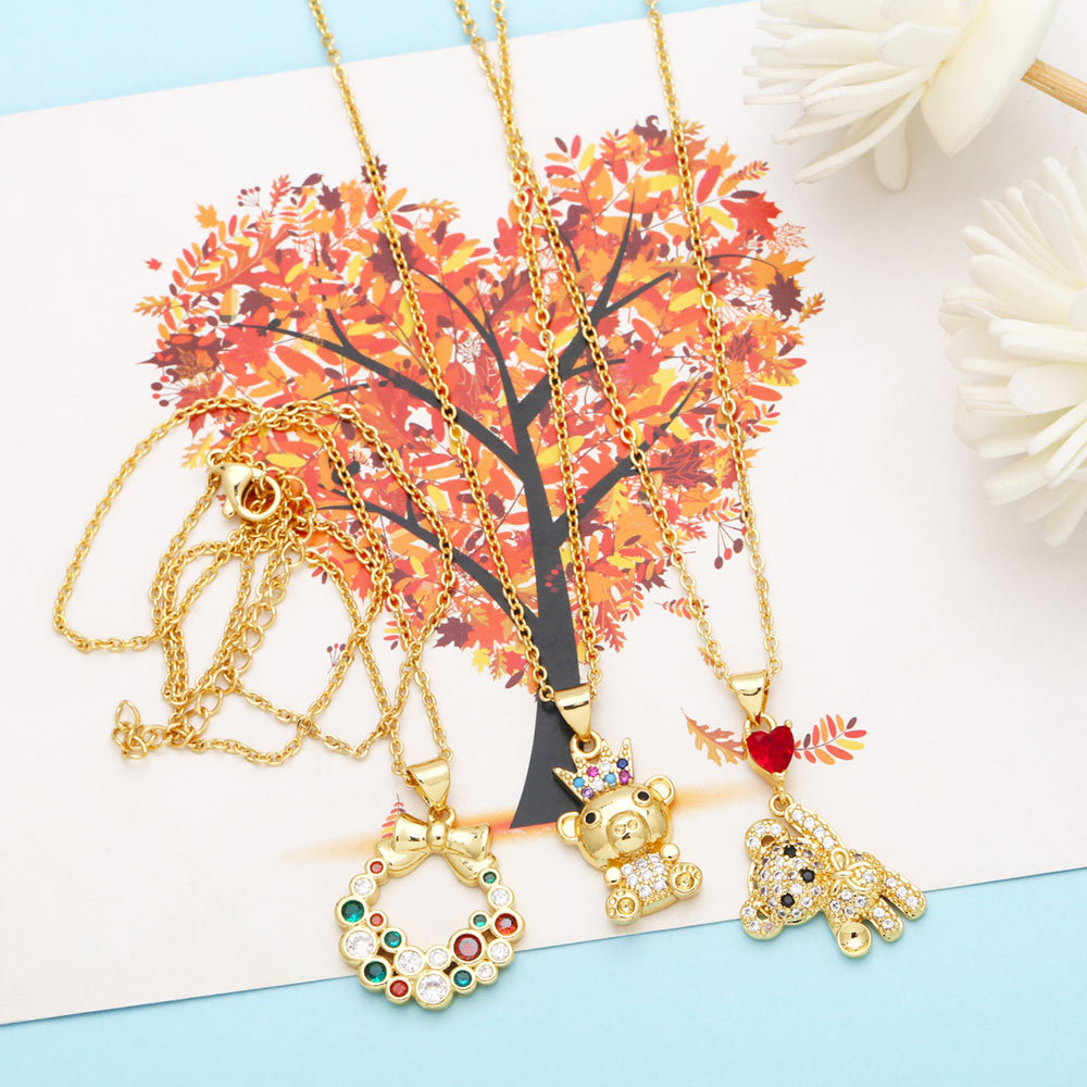 Cute bear necklace European and American new temperament micro-inlaid colored zircon love bear clavicle necklace female nks29