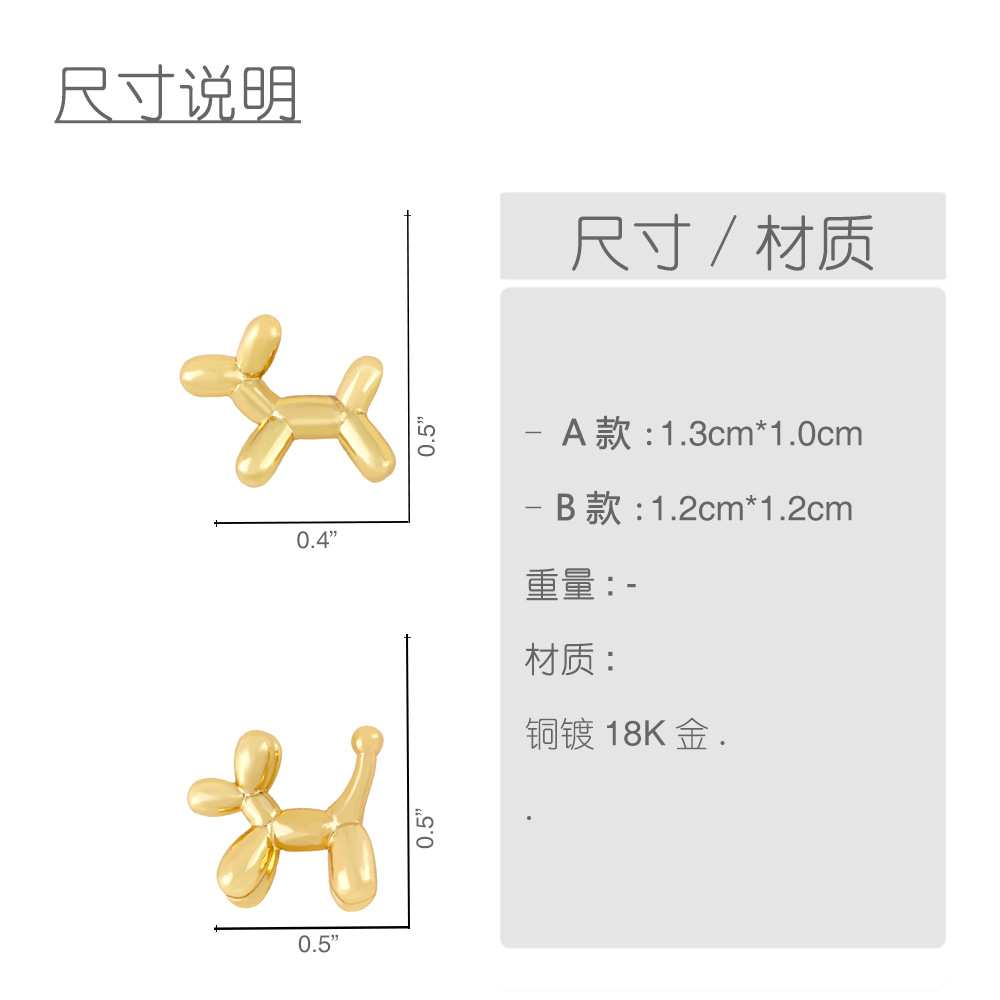 Cute, exquisite and fashionable balloon dog earrings 18K gold-plated earrings simple and compact mini earrings ery46