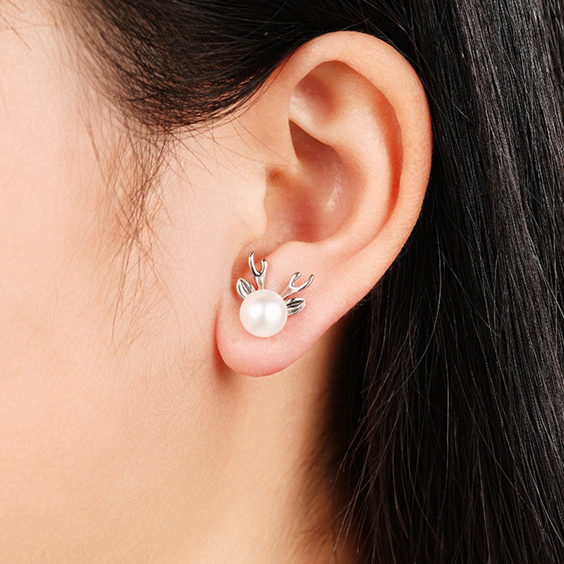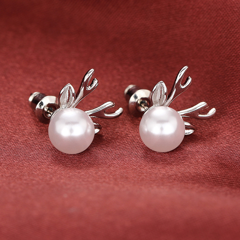 Cute Imitation Pearl Lady Antler Earrings Women Fashionable and Popular Earrings Christmas Matching Jewelry Gift