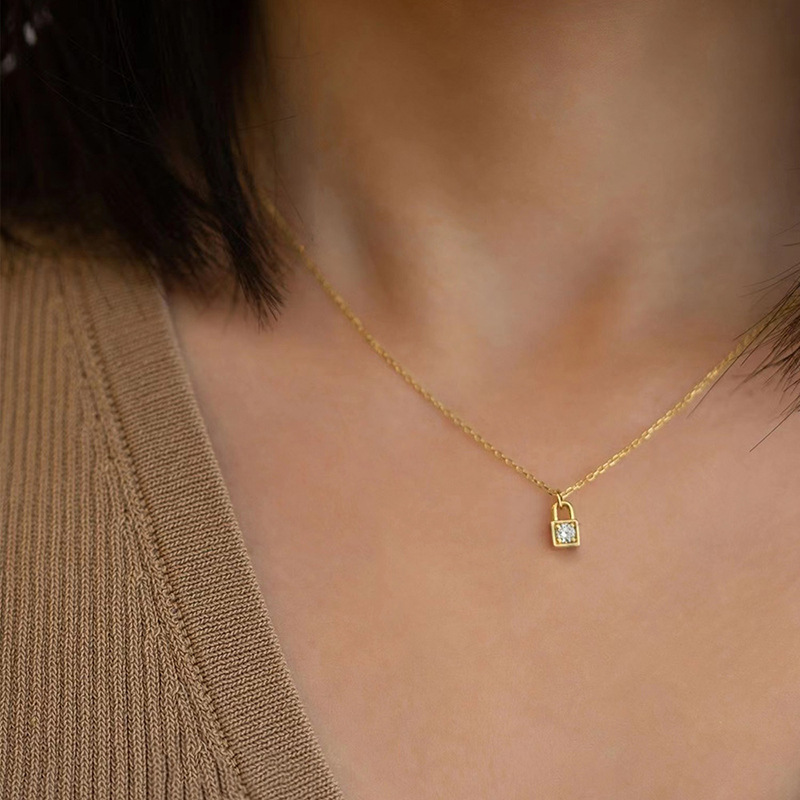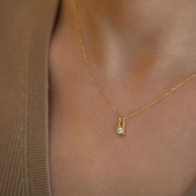 Cute mini single diamond necklace lock love story design clavicle chain love key fashion women's necklace